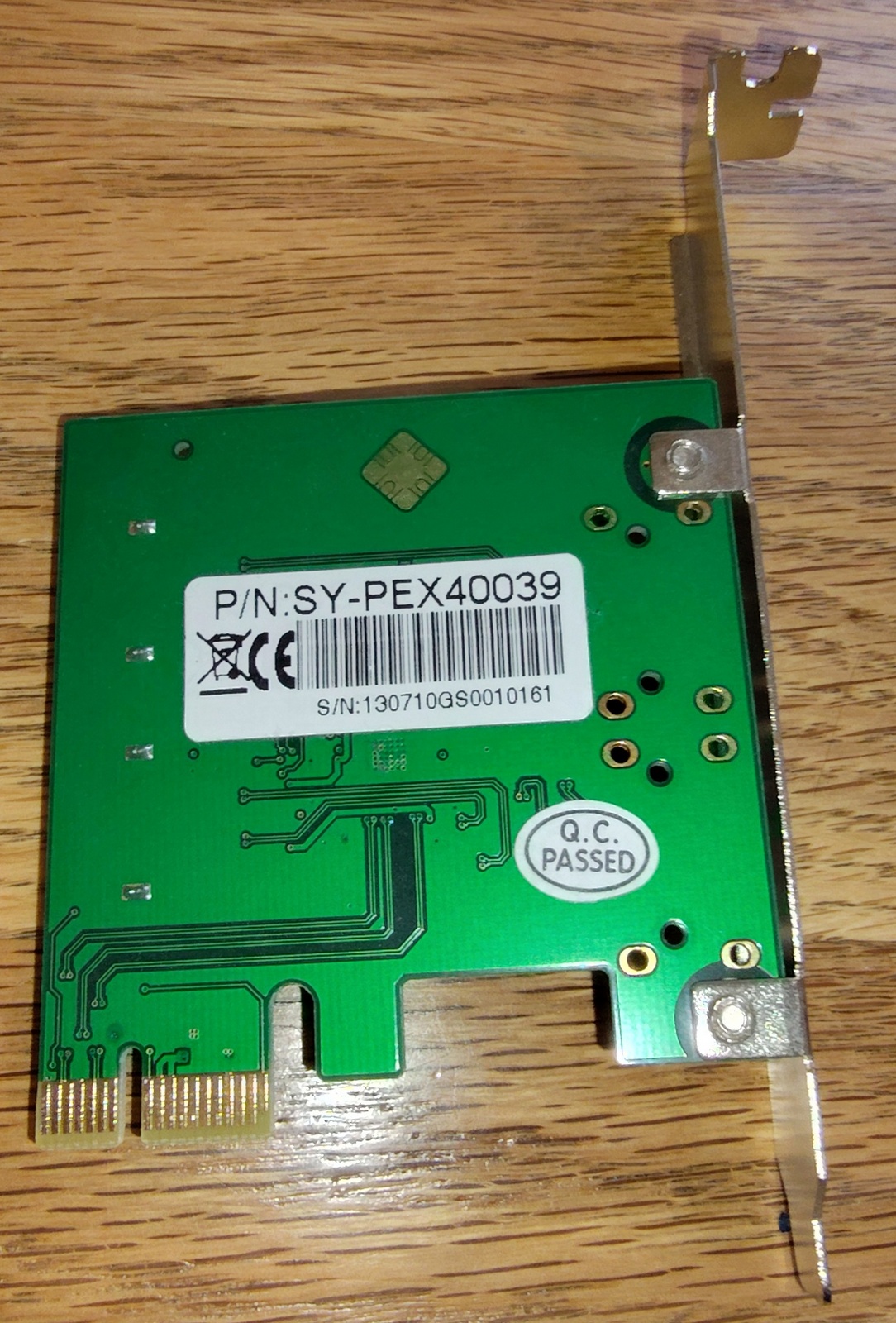 - 1 x Syba SY-PEX40039 PCIe SATA III Controller Card (2 internal ports)