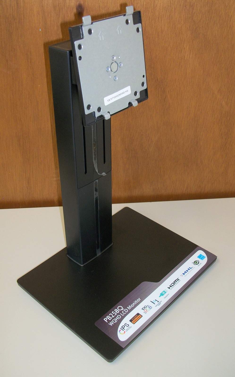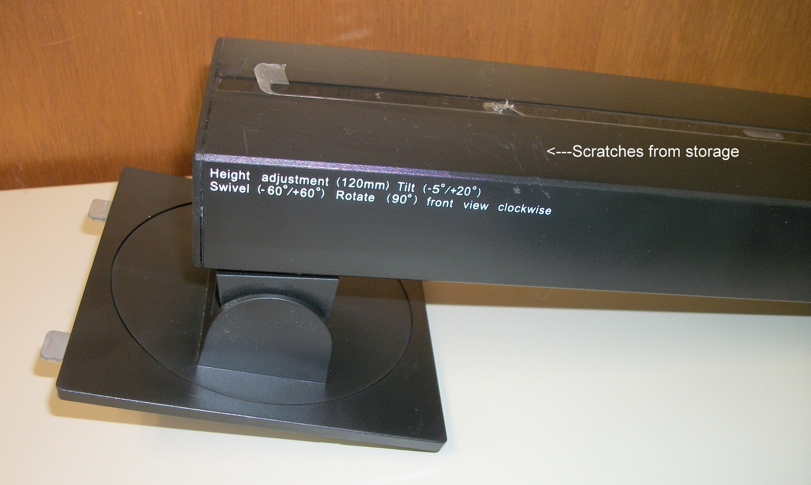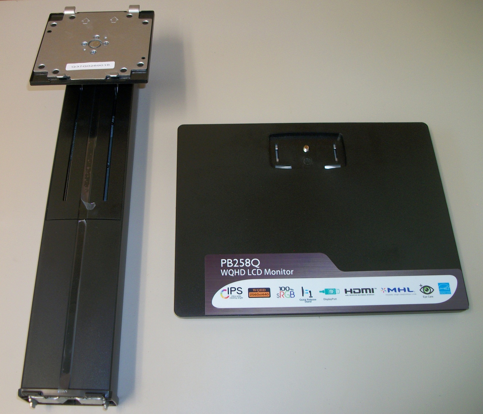 Up for sale is a stand that came with an Asus PB258Q monitor and is in new condition – we purchased the monitor and immediately mounted it to a dual screen mount and never used the original stand (this one offered for sale) This stand has some small scratches from being in storage – SEE PICTURES! It may fit other Asus monitors, but we’re not sure which ones, so please check with Asus for compatibility with your monitor BEFORE you purchase this stand. It has adjustments for height (120mm), swivel (-60 degrees to +60 degrees, and rotate (90 degrees front view clockwise)