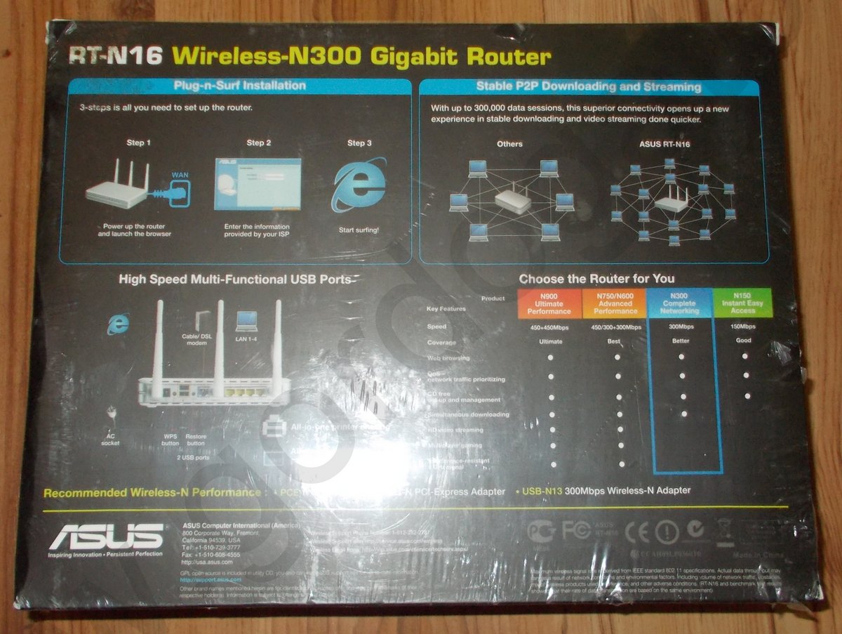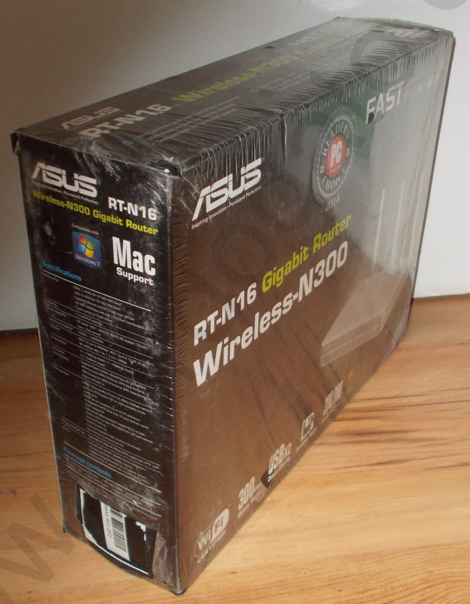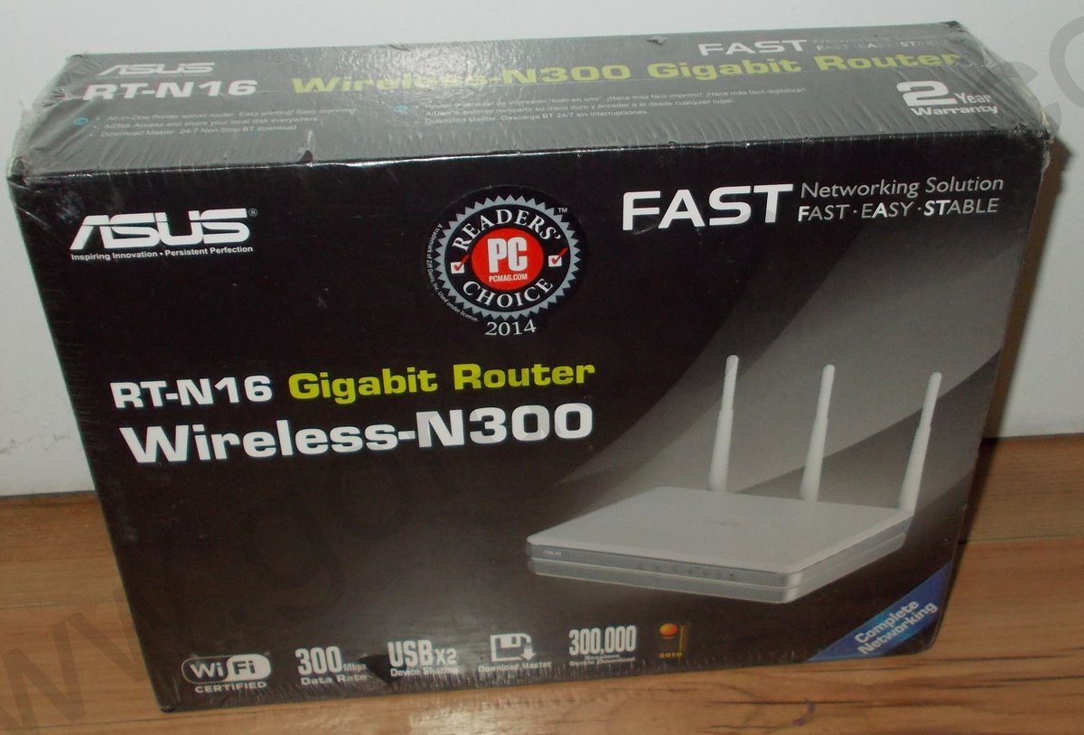 Up for sale is an Asus RT-N16 wireless router which is new in the box. We had three of these in service and purchased this one as a spare in April of 2015, but never used it and now we’re offering it on the internet in hopes that someone out there can put it to use. The barcode was removed for the rebate at the time. It is capable of running DD-WRT or the Asus firmware.