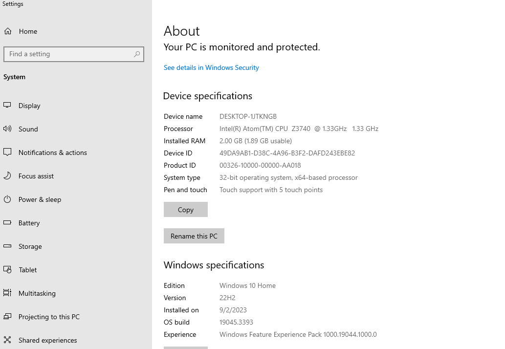 - Clean install of Windows 10 32-bit