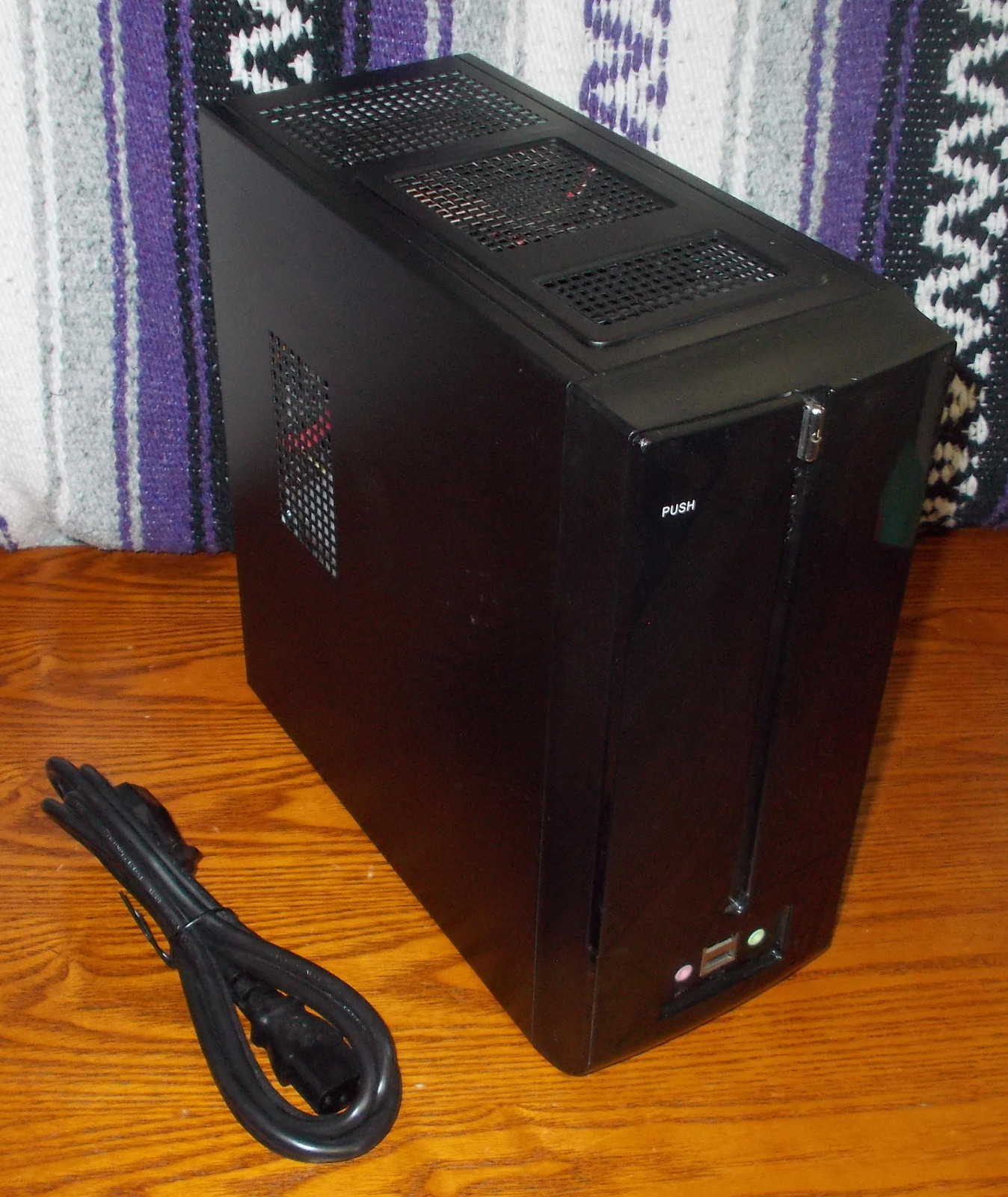 Up for sale is an slim (Small Form Factor) ITX Desktop PC in good used condition. This desktop was originally built in 2010 and had a conventional hard drive which was upgraded to SSD – the original HDD is NOT included. The SSD has been wiped and a there is a clean install of Linux Mint 20 on it – this originally came with Windows 7 Home on it and had been upgraded to Windows 10 Home (during the free upgrade period), but there is NO PRODUCT KEY included. We retired this PC when it was replaced with something faster and newer. The password for Linux is password – we recommend you change this. The case is in ok shape with minor scratches/scrapes – see pictures. Please keep these things in mind when considering your purchase. If you would like to save on the shipping cost, you’re welcome to schedule an appointment and stop by to pick it up.