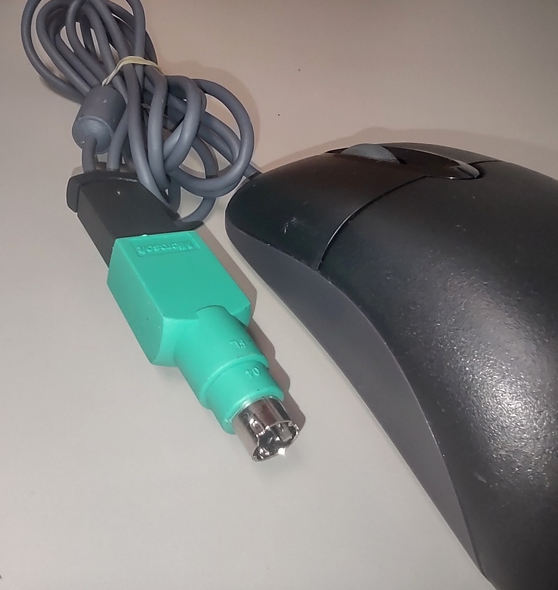 Up for sale is a used black Microsoft 2-button Wheel (Scroll) Mouse part number X802382. PID 56180-523-4805425-4. We connected this to the PS/2 port of our old Windows XP Machine and it seemed to work just fine. We believe this to be from the early to mid 2000s. Please remember to power off your PC before connecting PS/2 peripherals. Or you can use it without the adapter in a standard USB port. Hope someone out there on the interwebs can put it to use, or collect it!