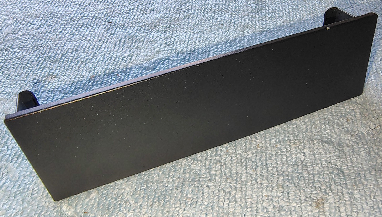 Up for sale is a black steel faceplate for use with Corsair Vengeance C70 cases. It is for a 5.25″ external bay. This may fit other cases, but we’re not for certain – you should check with Corsair for compatibility with your case BEFORE you purchase this one. It measures about 5 7/8 inches wide by about 1 11/16 inches tall – the tabs extend back about 1 1/4 inches.