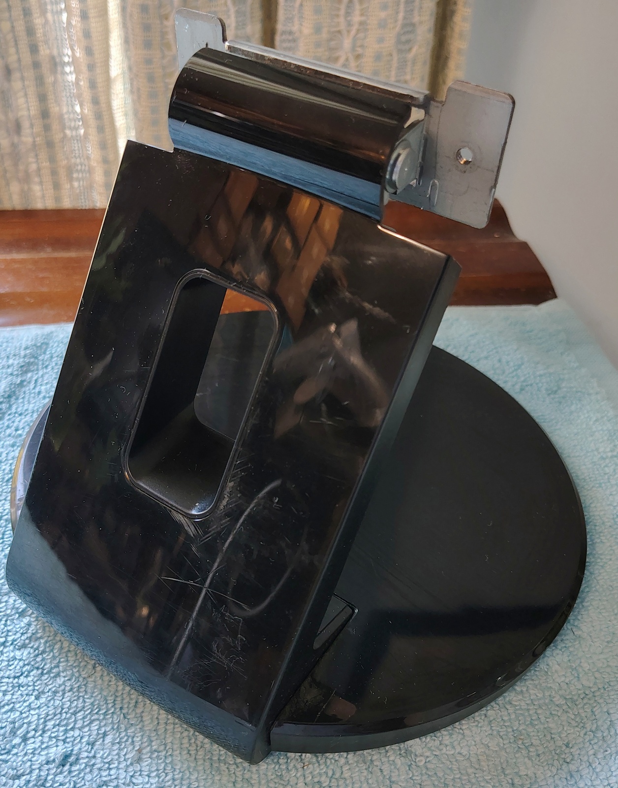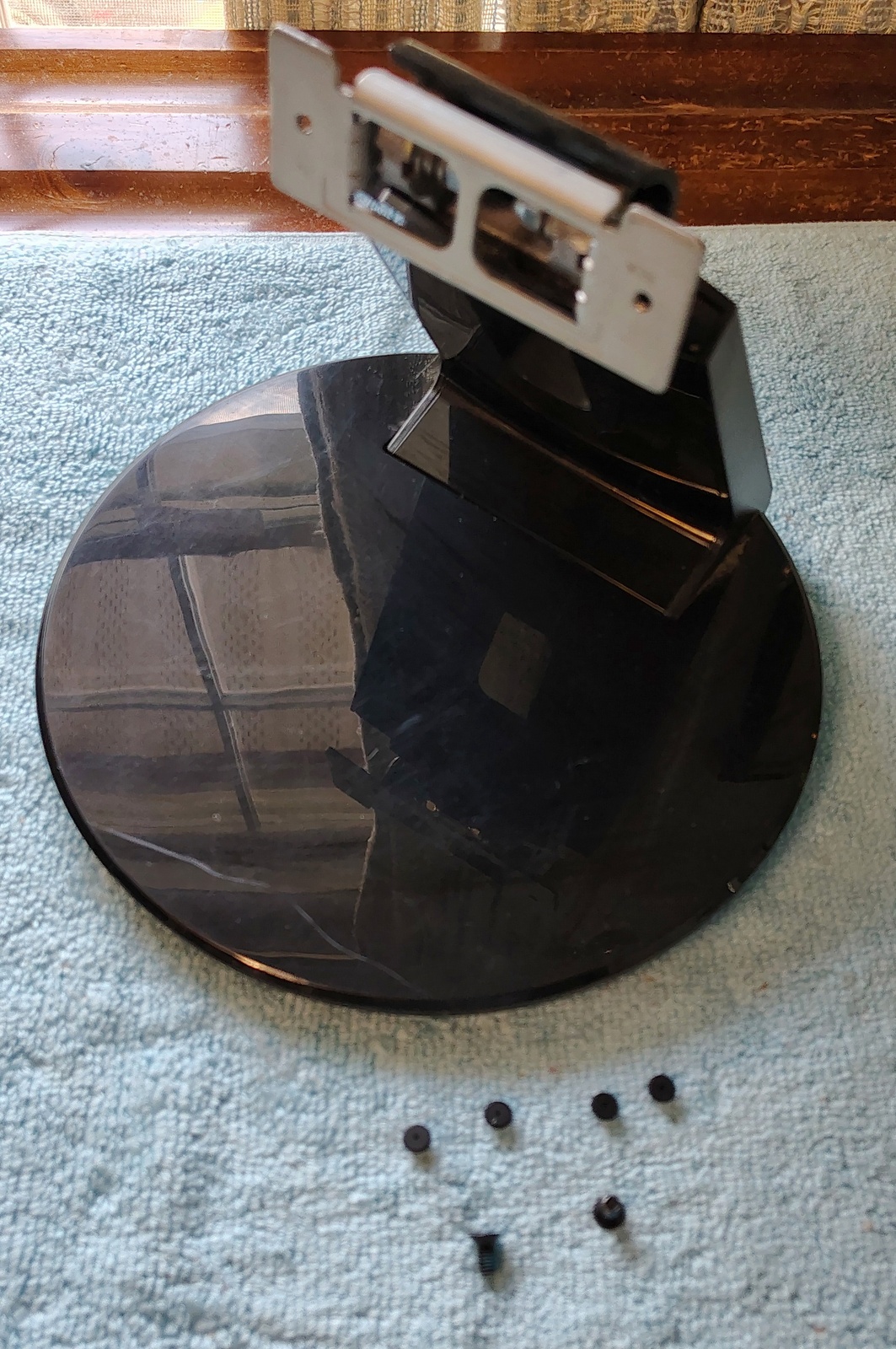 Up for sale is a stand that came with an Asus VE247H monitor from 2014 and is in good used condition – the monitor was mounted to an adjustable stand and this stand was not needed and left over. Hope someone out there can use it. It may fit other Asus monitors, but we’re not sure which ones, so please check with Asus for compatibility with your monitor BEFORE you purchase this stand. The screws which attach the vertical piece to the monitor and the four little rubber nubs which go into the holes for mounting the monitor are included (see pictures). This stand is in used condition with minor scrapes / scratches / et cetera – see pictures! The screw holes are approximately 3″ apart.