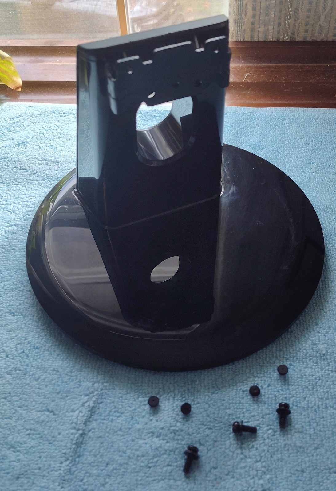 Up for sale is a stand which was recently removed from an Asus VH238H monitor and is in good used condition – the monitor was manufactured in 2013 and we finally go around to mounting it to a dual screen stand and now have this stand left over. Hope someone out there on the interwebs can put it to use! It comes with the screws which hold the stand to the monitor and the covers over the VESA mountable holes – see picture. It may fit other Asus monitors, but we’re not sure which ones, so please check with Asus for compatibility with your monitor BEFORE you purchase this stand. On the metal piece which screws to the monitor it is stamped ‘TPV SA37G0090-3’.