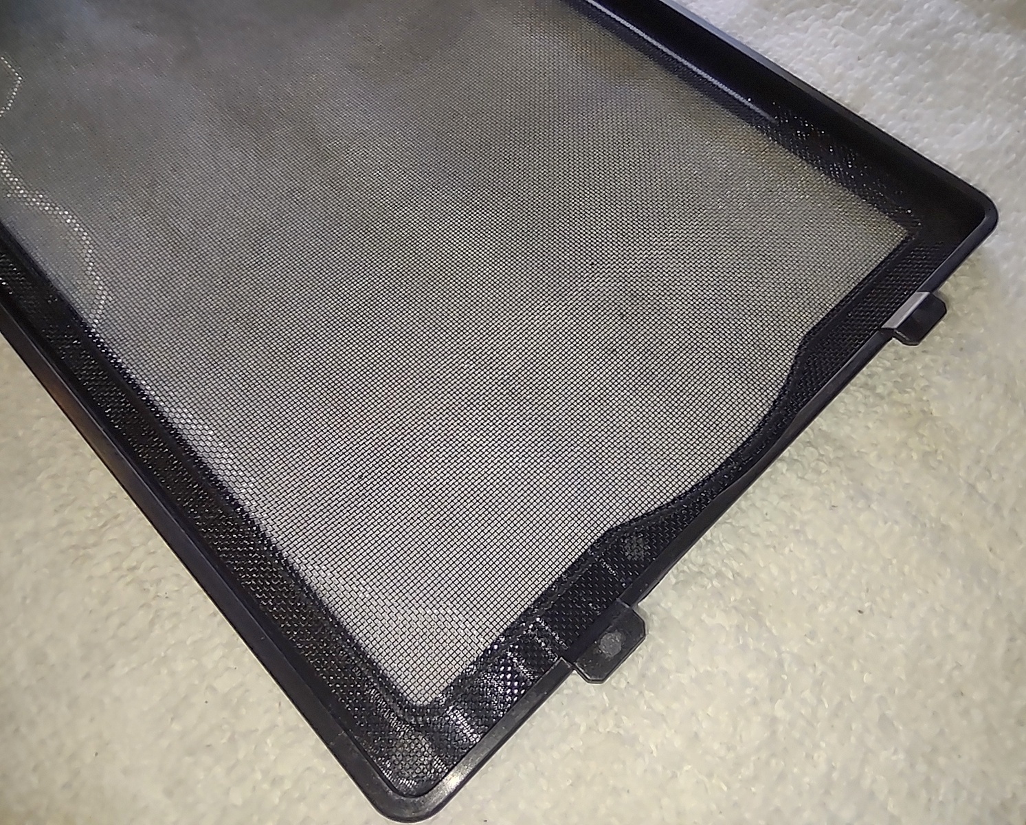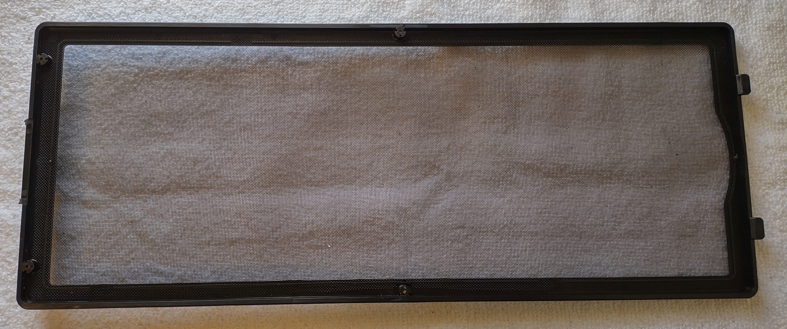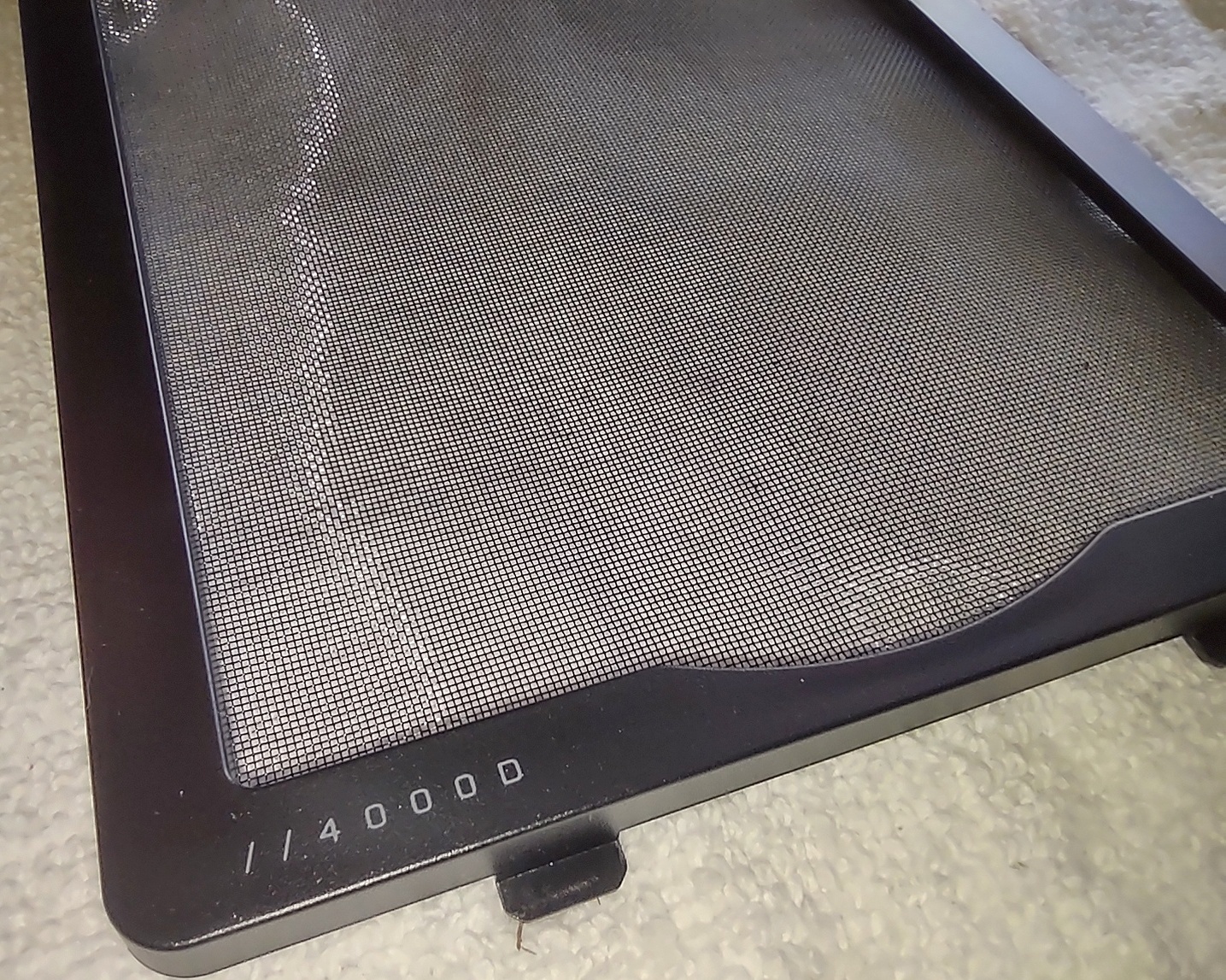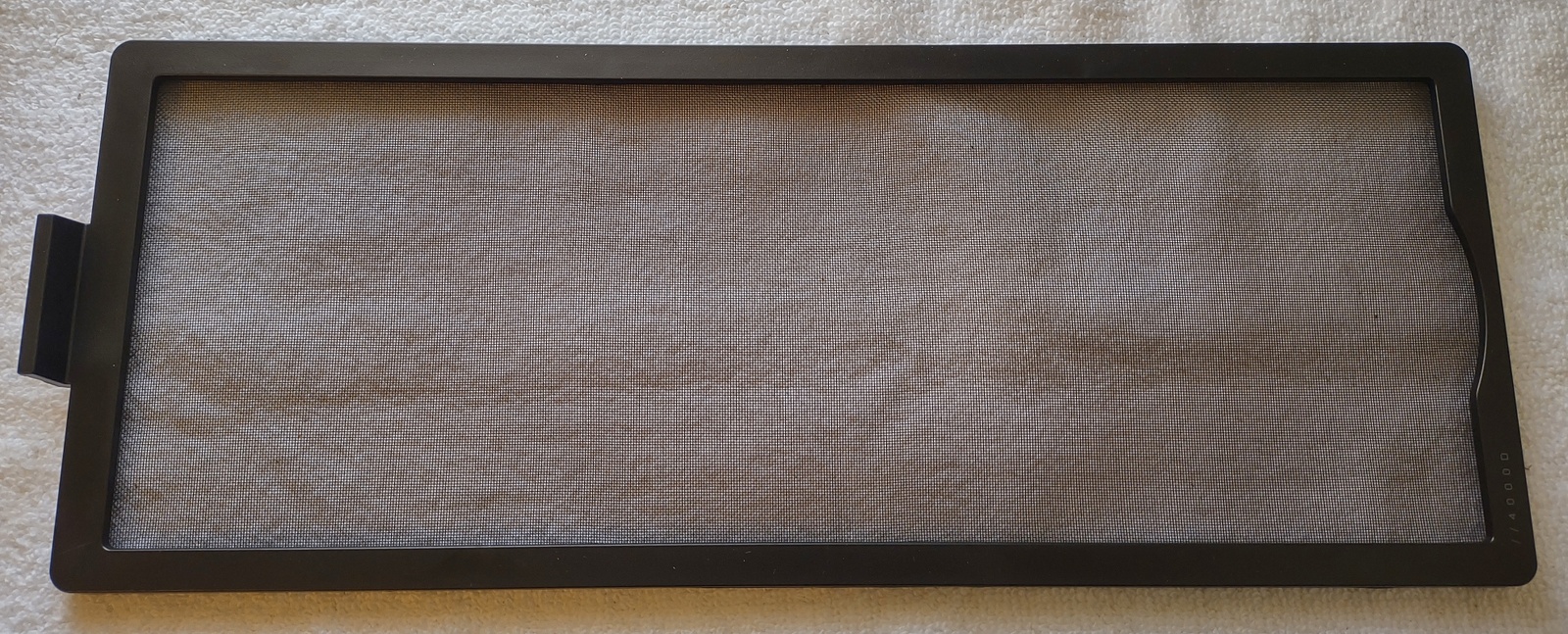 Up for sale is a black removable magnetic front dust cover for use with Corsair iCUE 4000D Airflow / 4000D / 4000X PC cases. It attaches to the front of the case to filter dust out of the air moving through the case; This may fit other cases, but we’re not for certain – you should check with Corsair for compatibility with your case BEFORE you purchase this one. It might be useful in your own creation – it measures just about 15 3/4 inches long by about 6 inches wide by about 7/8 inches thick – measured at the tab at the top.