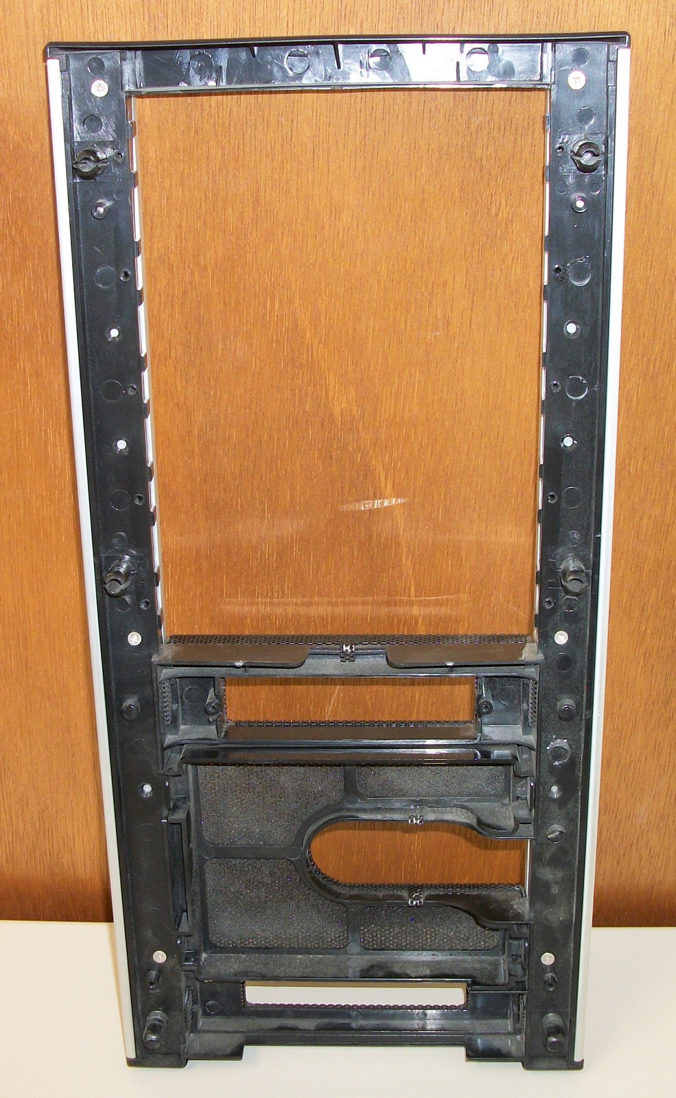 Up for sale is a black / aluminum front panel for use with Cooler Master Centurion 5 cases. The 5.25″ faceplates are NOT INCLUDED. This is from a case which we purchased back in May of 2007 which we finally got around to retiring. It measures about 17 inches tall by about 8 inches wide by about 1 1/16 inches thick. It is black and Aluminum – there are some scratches on the AL – these are hard to see in the pictures.