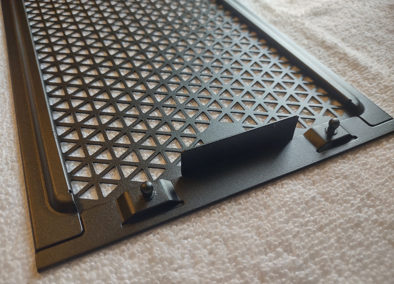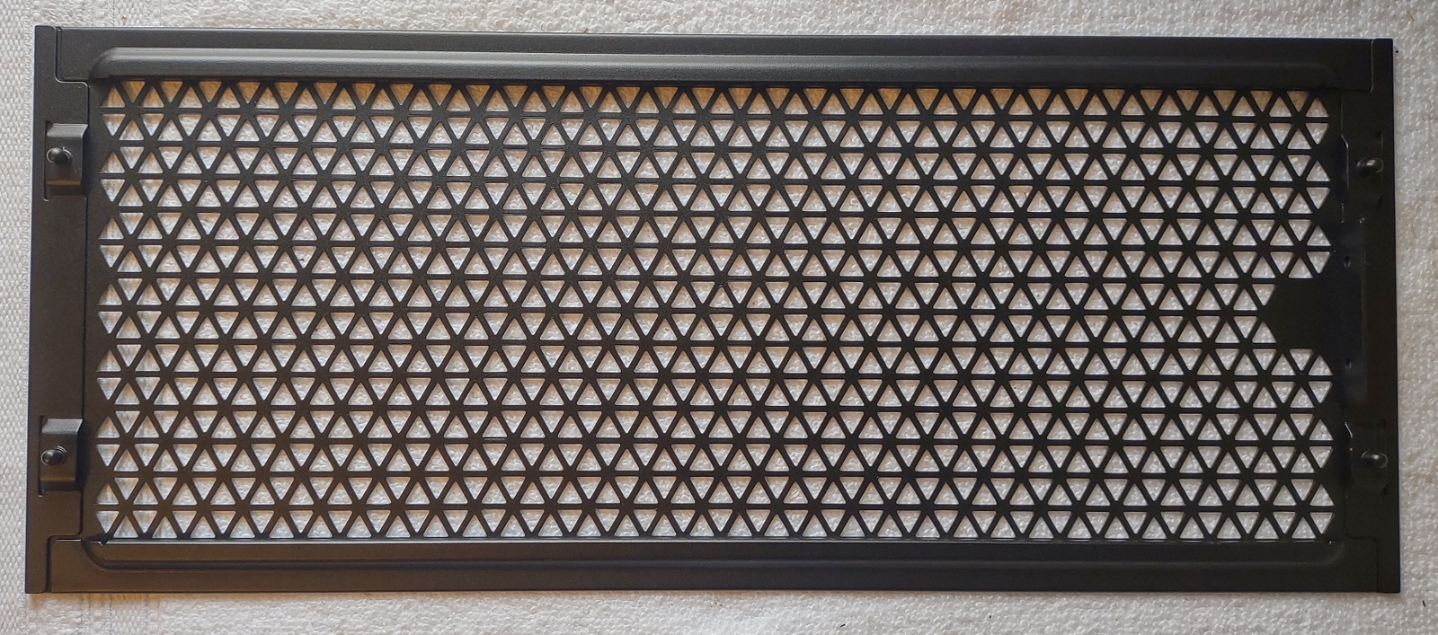 Up for sale is a black metal front panel for Corsair 4000D Airflow computer cases. These are for Corsair 4000D Airflow cases, but may be compatible with others, but we’re not sure on that one, so please check with Corsair for compatibility with your case BEFORE you purchase this item. This is in unused condition. It measures about 17″ long by about 7″ wide by about 1/2″ thick (measured at the tabs).