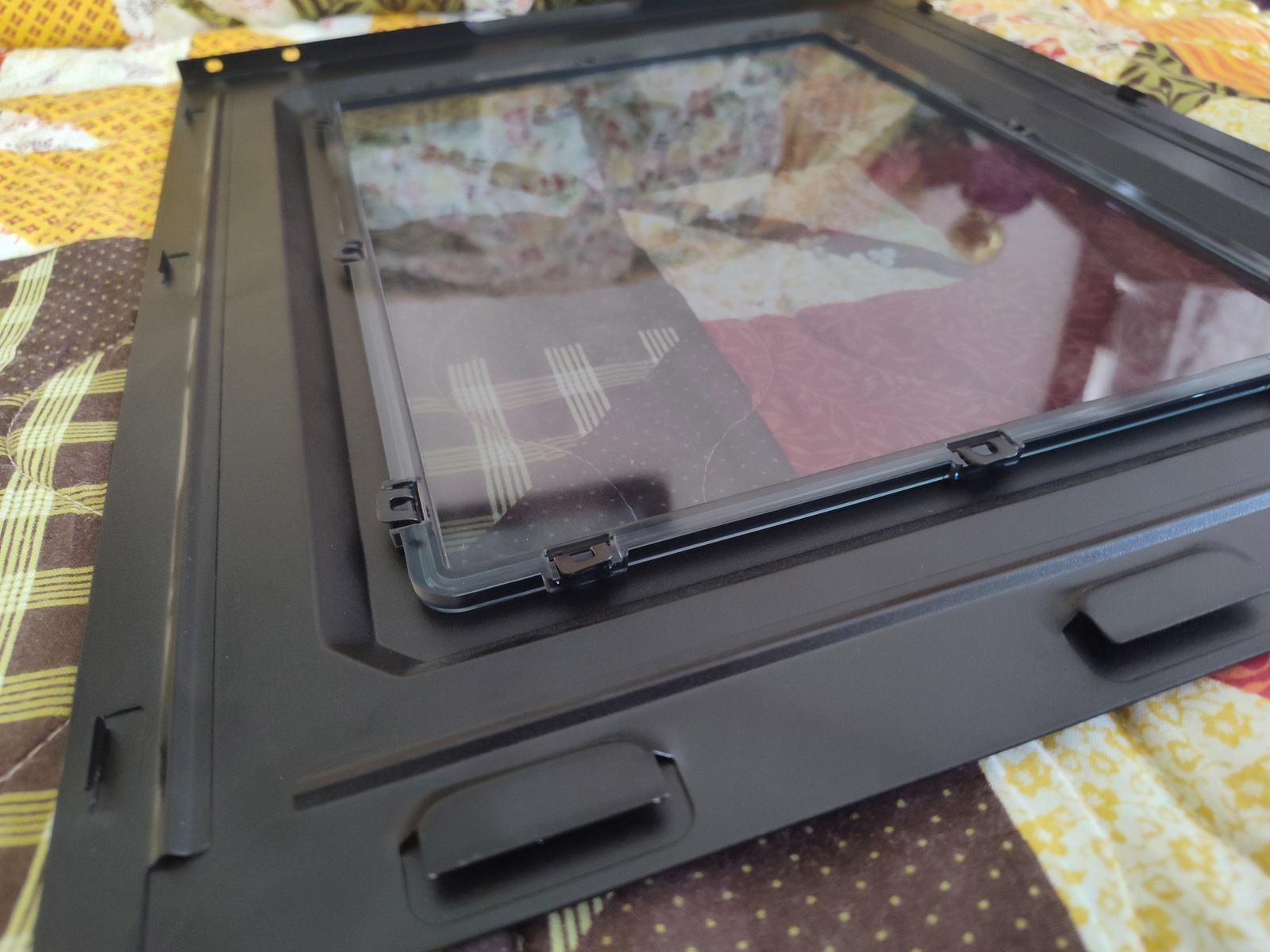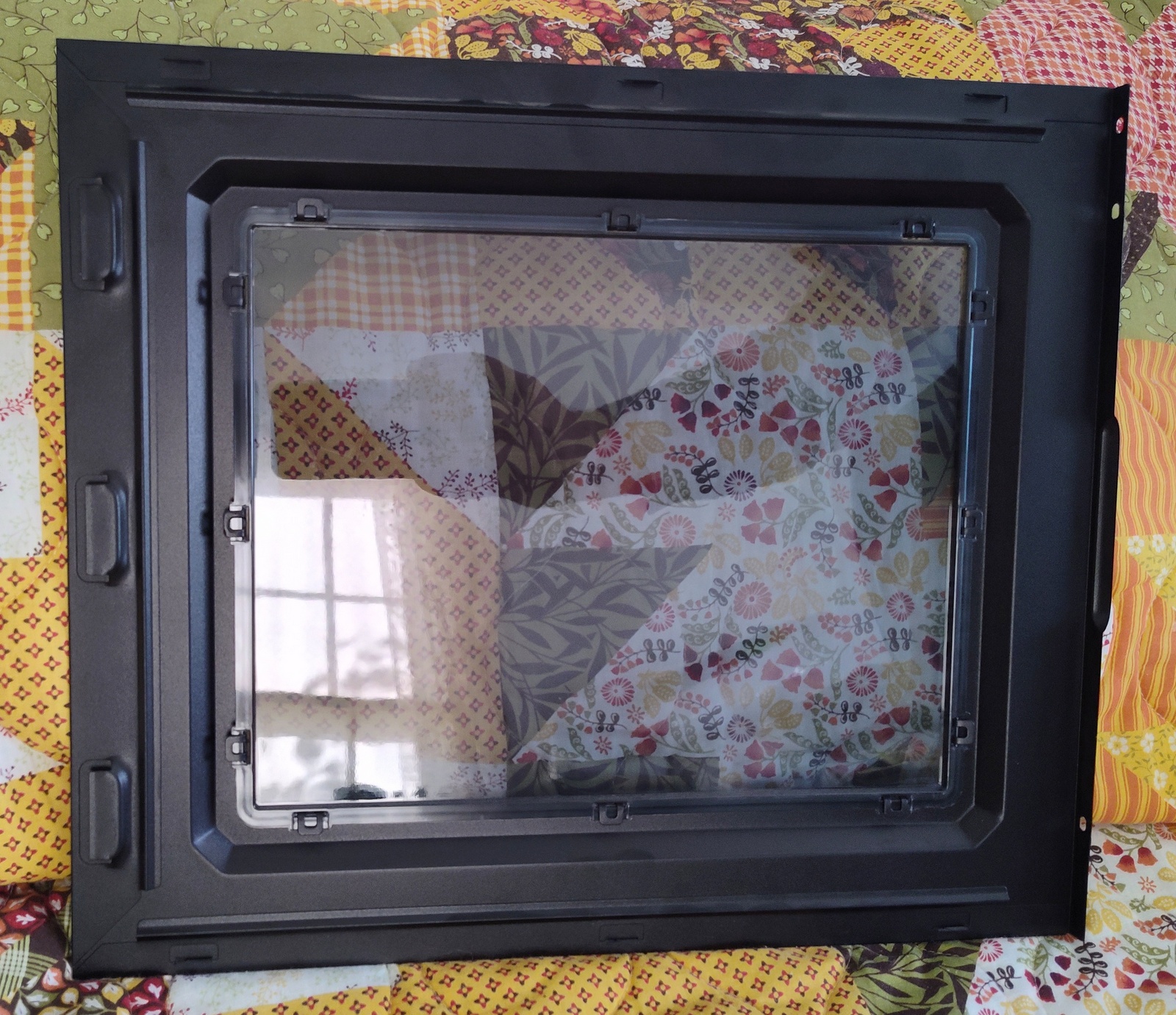 Up for sale is a side panel for use with Corsair Carbide 88R cases. It will install in either side of the case and the original thumb screws are included. This part has a plexiglass window on the side – see pictures!; This may fit other cases, but we’re not for certain – you should check with Corsair for compatibility with your case BEFORE you purchase this one. It is made of steel which has been painted black with a plexiglass window. It measures about 16 3/8″ wide by about 13 13/16″ tall by about 1/8″ thick.