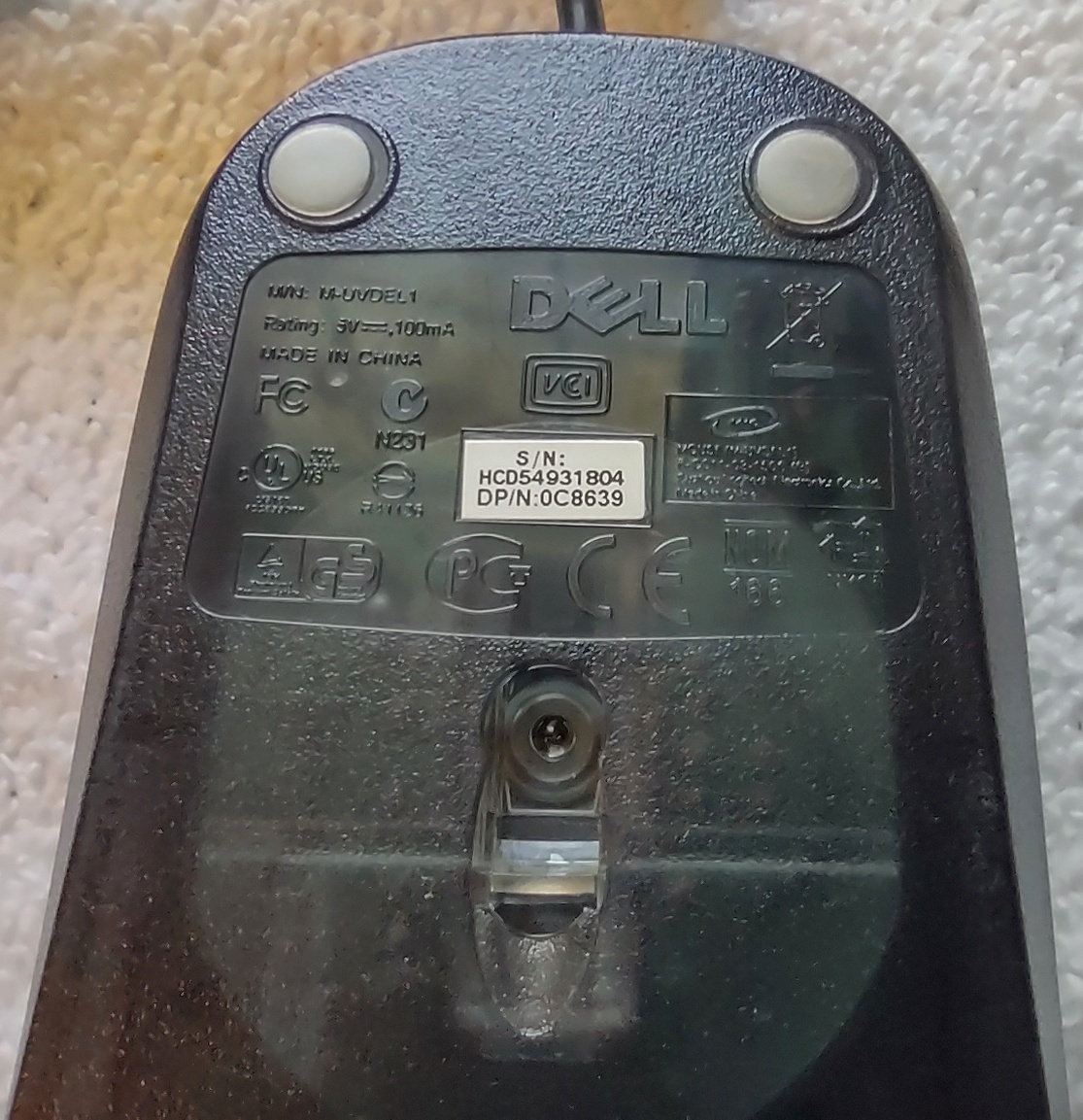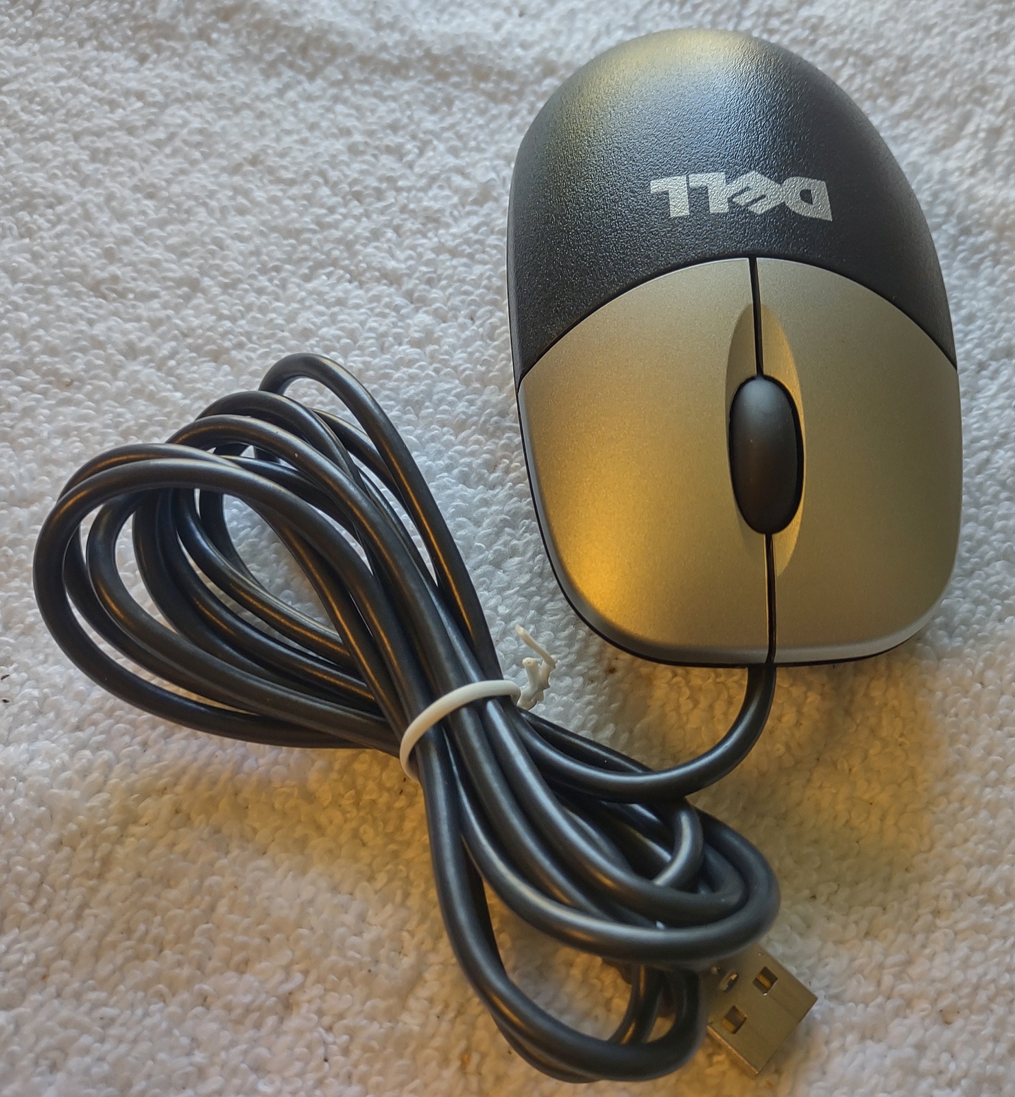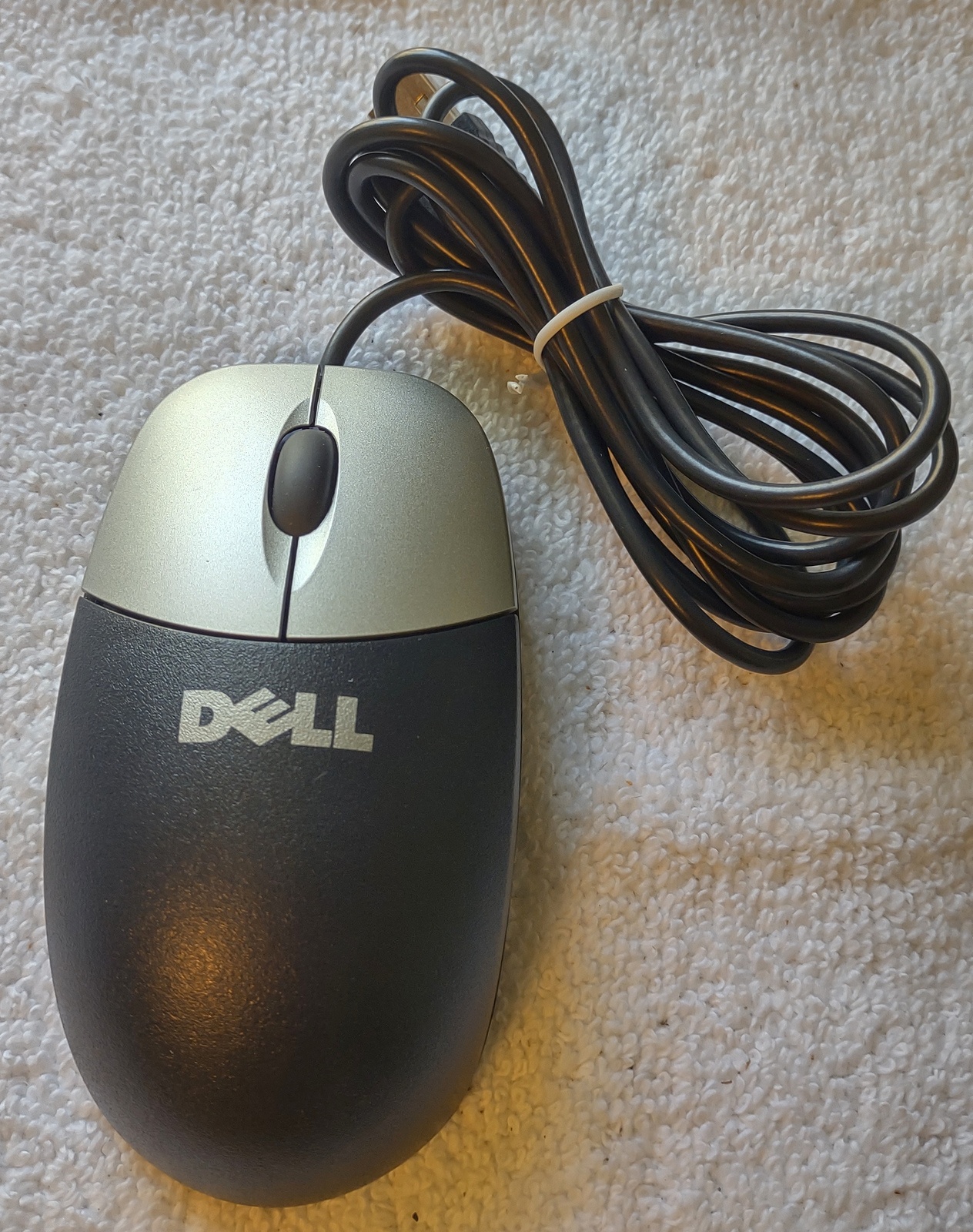 Up for sale is a used black / silver Dell 2-button Wheel (Scroll) Mouse part number 0C8639. M-UVDEL1. We connected this to the USB port of our Windows 11 Machine and it seemed to work just fine. The tracking was a bit slow, but we attribute this to the mouse being from an era of 1024×768 resolution screens and us using it on a 2K monitor. We believe this to be from the mid 2000s. Hope someone out there on the interwebs can put it to use, or collect it!