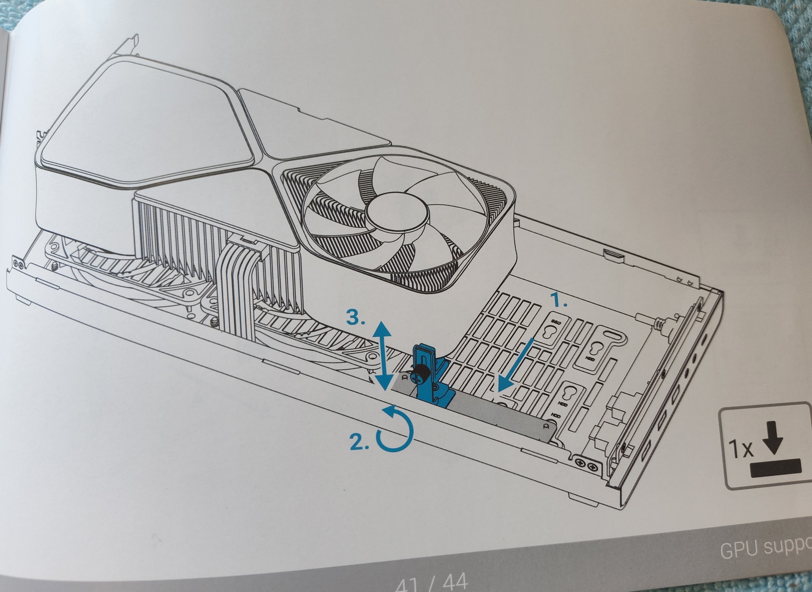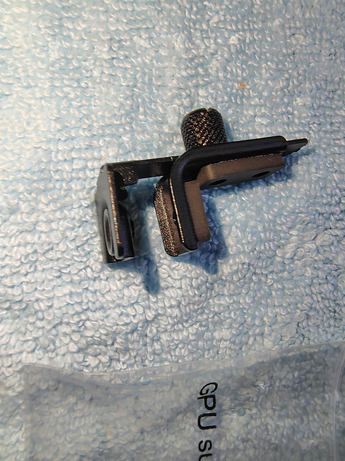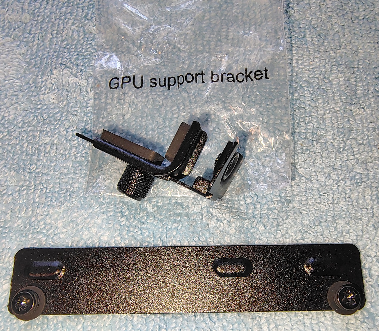 Up for sale is a black GPU support bracket and base for Lian Li A3-mATX-WD computer cases. This set is in unused condition and may be compatible with other cases, but please check with Lian Li for compatibility with your case BEFORE you purchase this item. The pictures from the manual are to show you how the part is installed in the case – the manual is NOT included! Hope someone out there in cyberspace can put it to use!