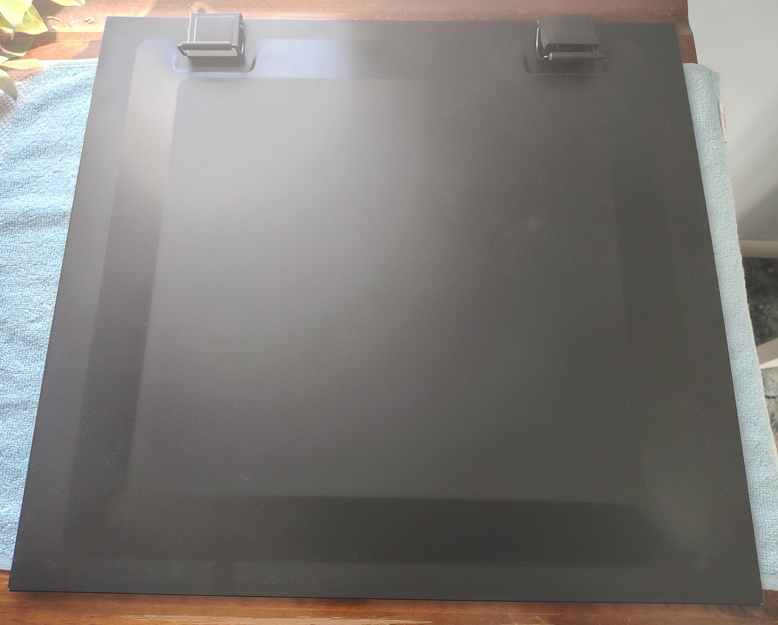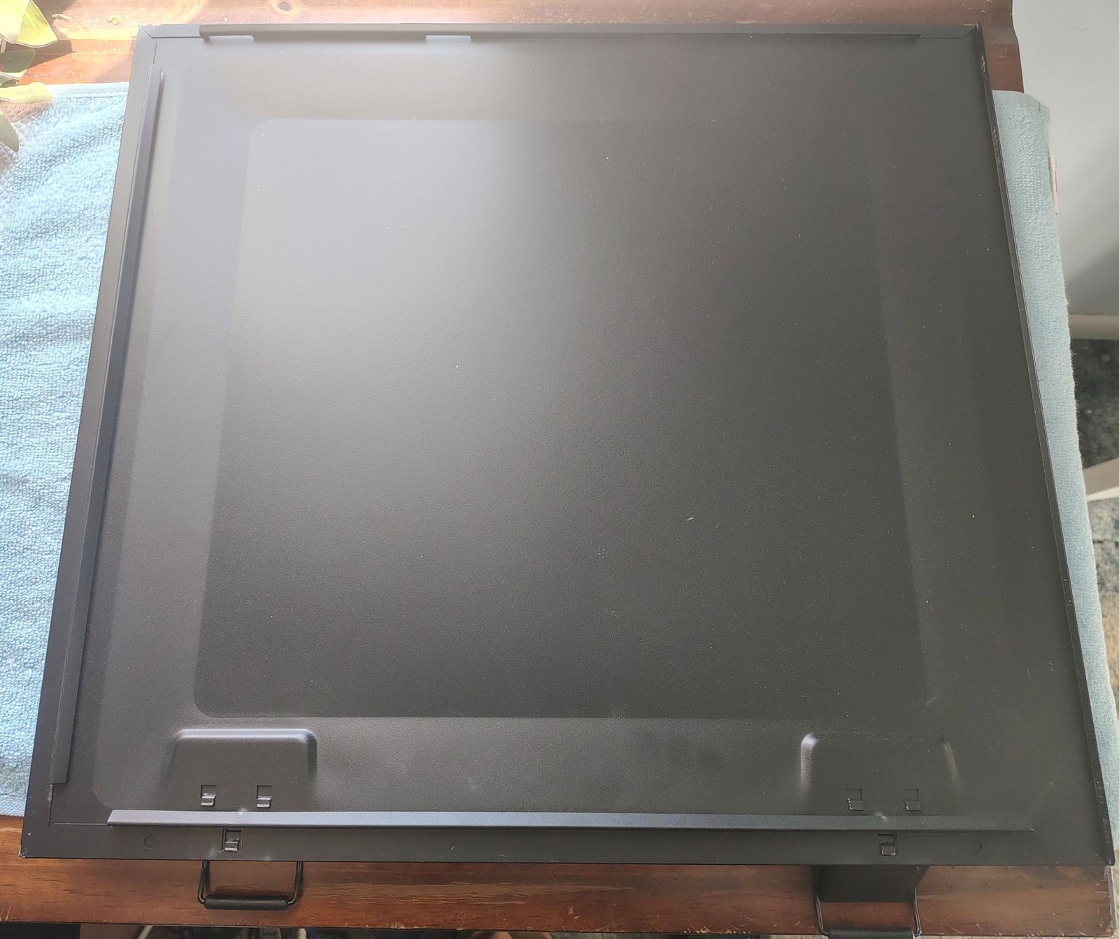 Up for sale is a black steel solid side panel for use with Corsair Vengeance C70 cases in good used condition. It measures about 18 inches tall by about 19 1/2 inches tall by about 3/4 inches thick (measured at the clasps).