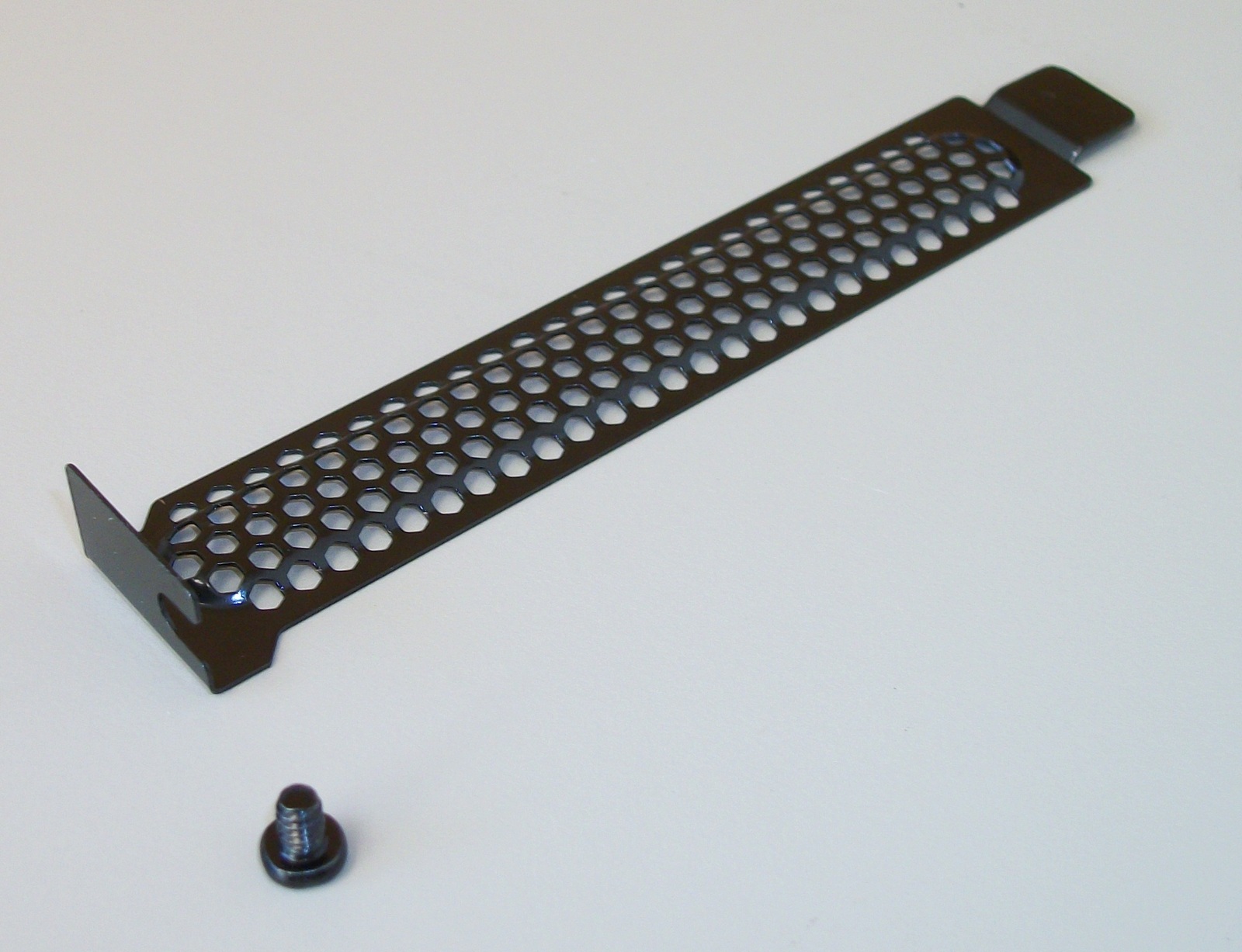 Up for sale is a black metal PCIe slot cover bracket for SilverStone SUGO SG13 computer cases. These are in unused condition and may be compatible with others since PCIe slot covers are pretty standard. Please check with SilverStone for compatibility with your case BEFORE you purchase this item. If you’re looking for one to match what you’ve got with a SilverStone SUGO SG13 case, then this might be it! Hope someone out there on the interwebs can put it to use! This item is black in color, but came with a white case. This includes the 6-32 screw to fasten the slot cover to the case.