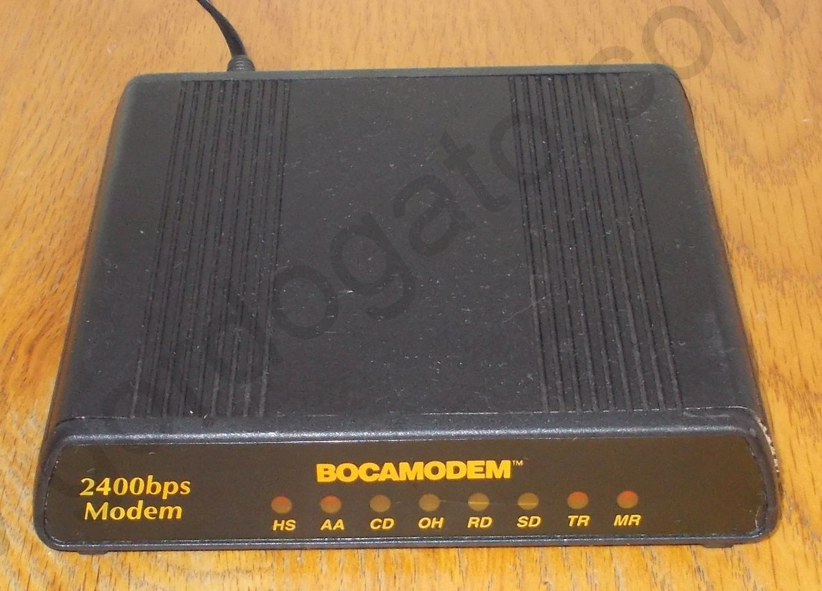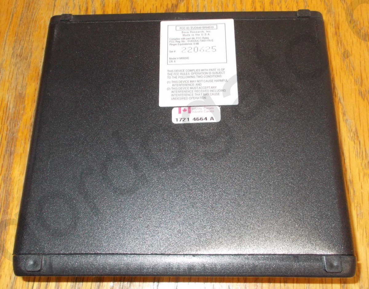 Up for sale is an old Boca 2400 M0024E external modem with the AC adapter. When powered on, some of the lights come on on the front of the modem, but that’s the extent of the testing we’re able to do. This is probably 25 years old. So, it is sold as-is for a collectible only. We have several of these available.