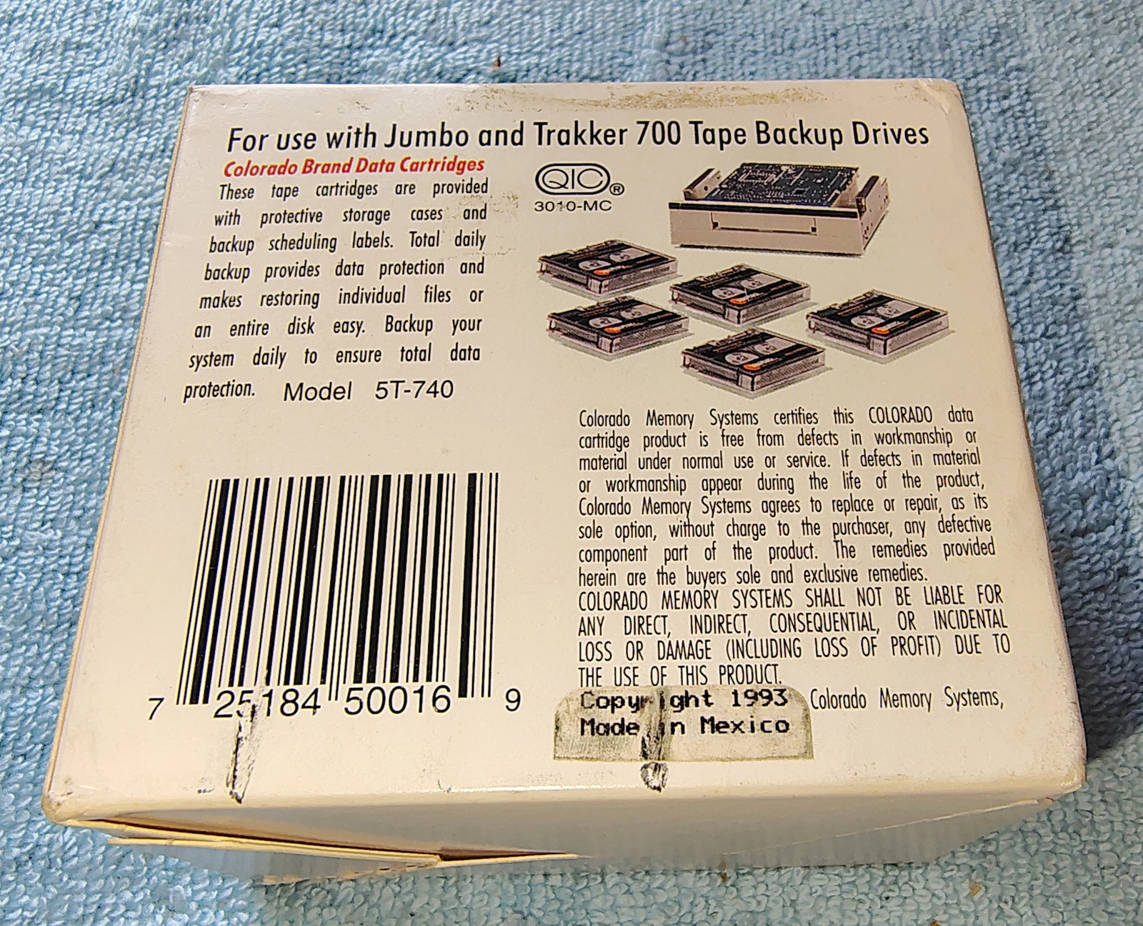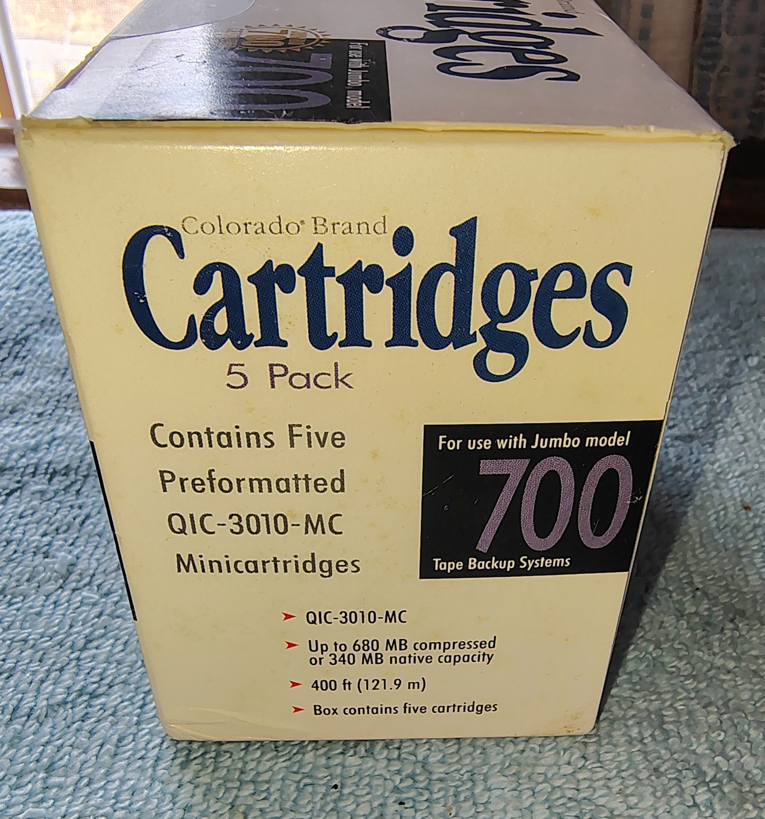 Up for sale is a box of 4 New, Old Stock Colorado Jumbo 700 DT-740 QIC-3010-MC 680/340 MB backup tapes from 1993. These are in new condition and come sealed in the original box. Manufactured 1993.