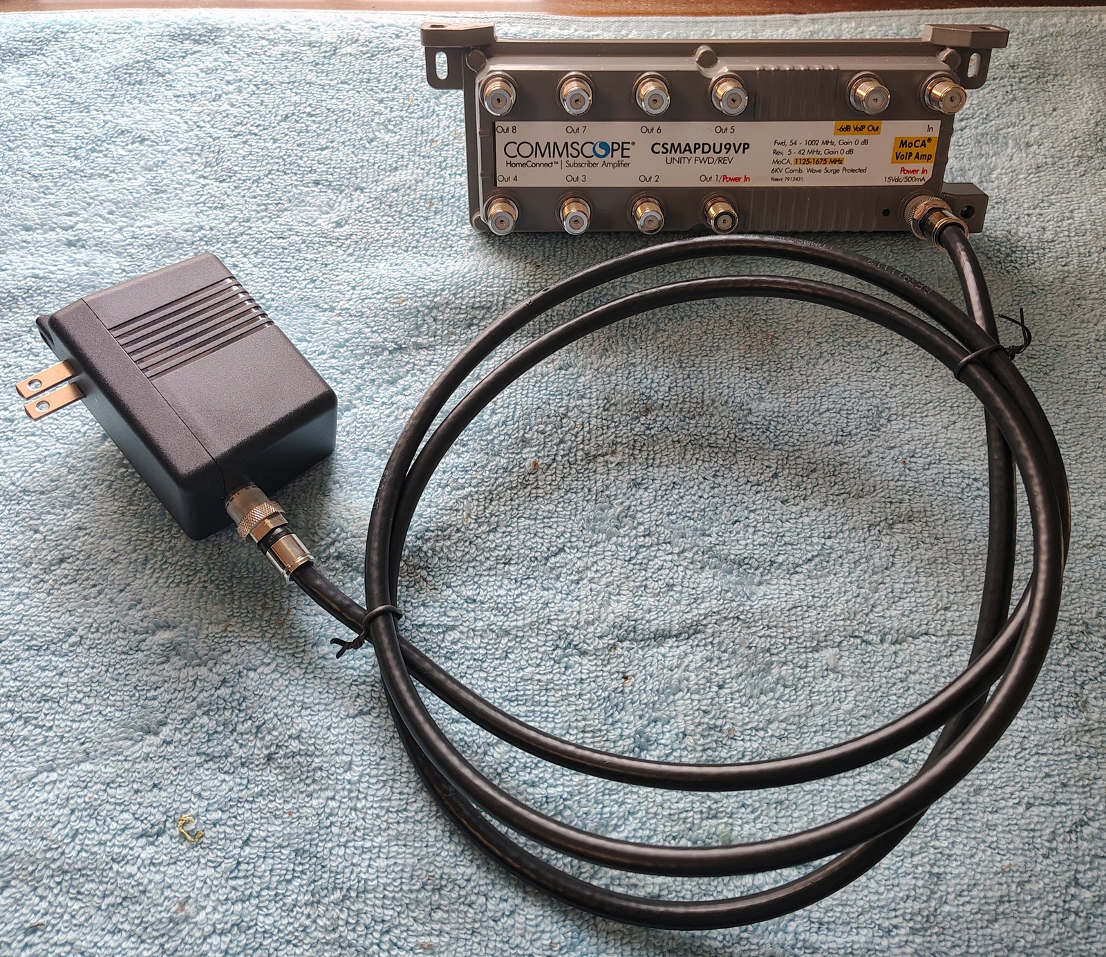 Up for sale is a CommScope HomeConnect Subscriber Amplifier with the AC adapter. This was left over after switching from Comcast to the local fiber provider and is in good used condition. The screws which held it to the wall are included. Hope someone out there can put it to use!