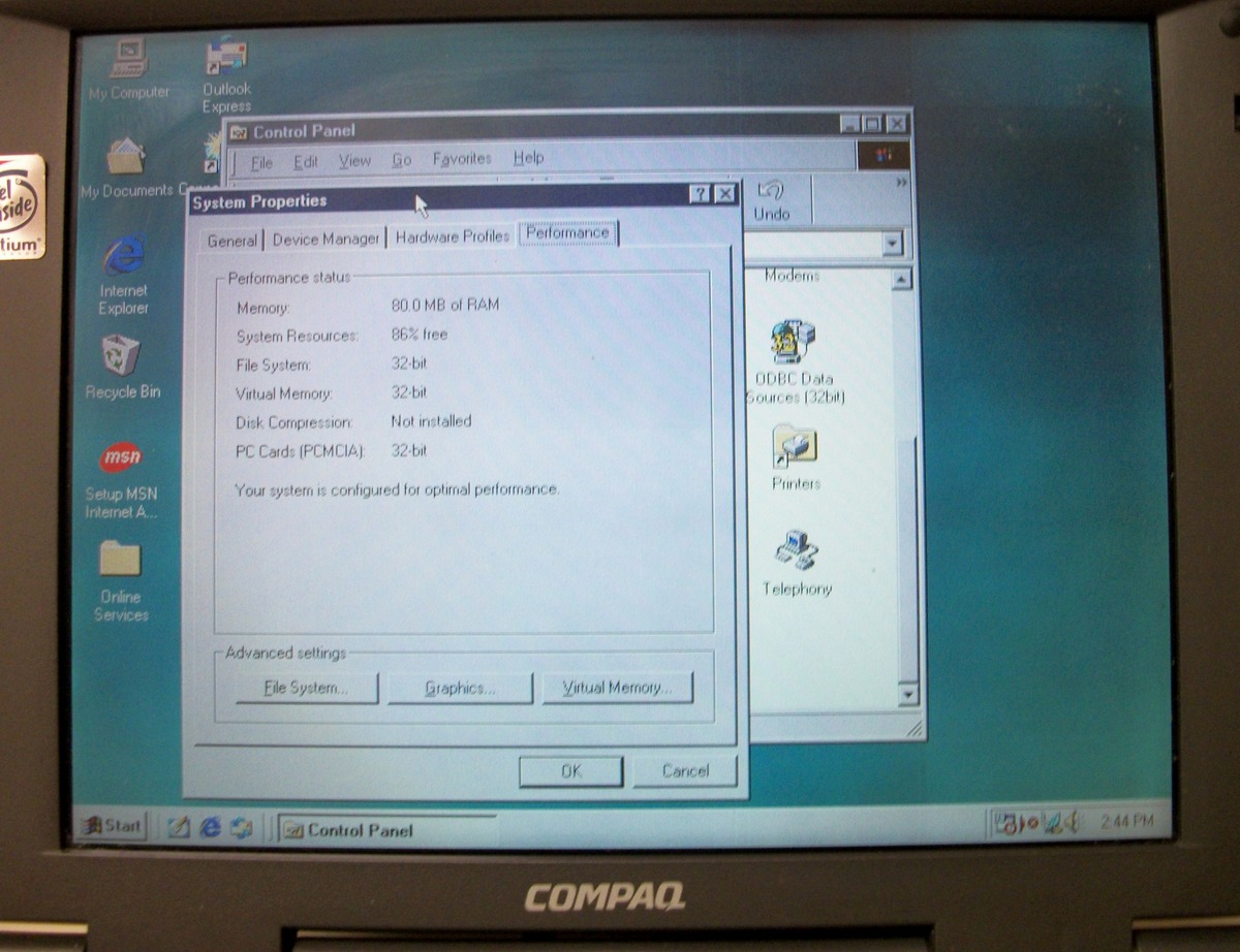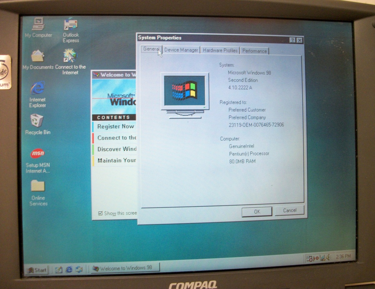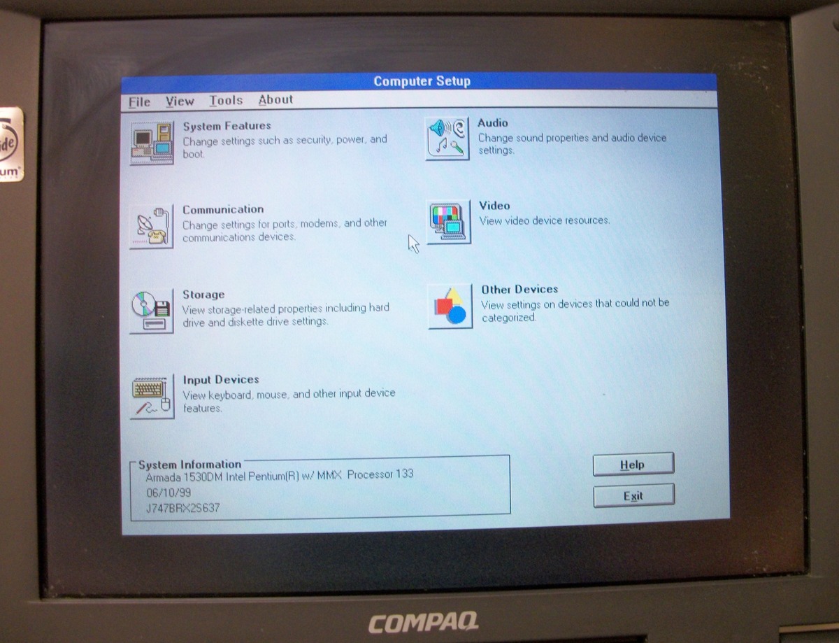 Up for sale is an old Compaq laptop. You get what you see in the pictures. The hard drive has been wiped and there is a clean install of Windows 98 on it – there is one device in device manager which is unknown and will need a device driver installed – we do not have this device driver. The Windows 98 disc is NOT included, but we copied the CAB files to the hard drive and installed from there. We downloaded and created a boot disk from HP’s website for the setup of this laptop (similar to BIOS), and those are some of the screenshots you see in the pictures. Please examine the pictures carefully before you purchase.