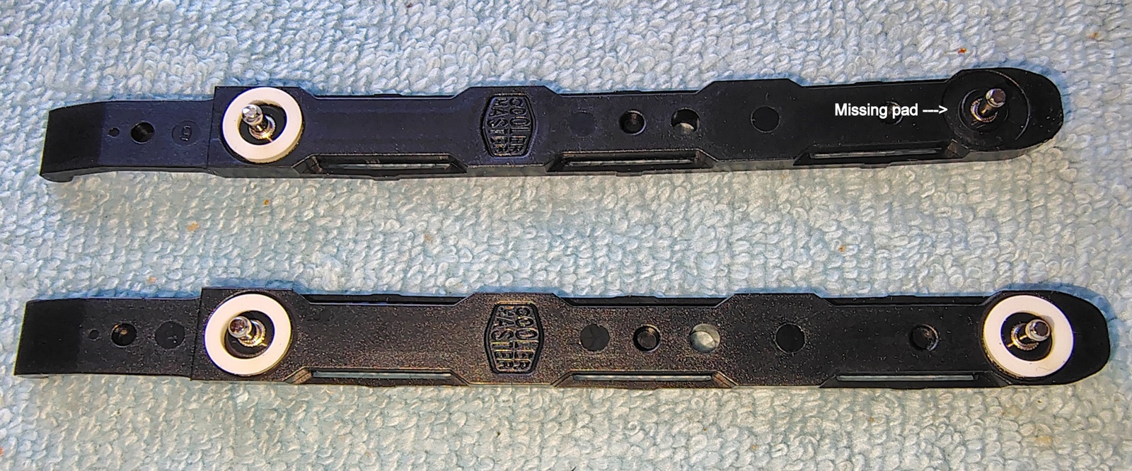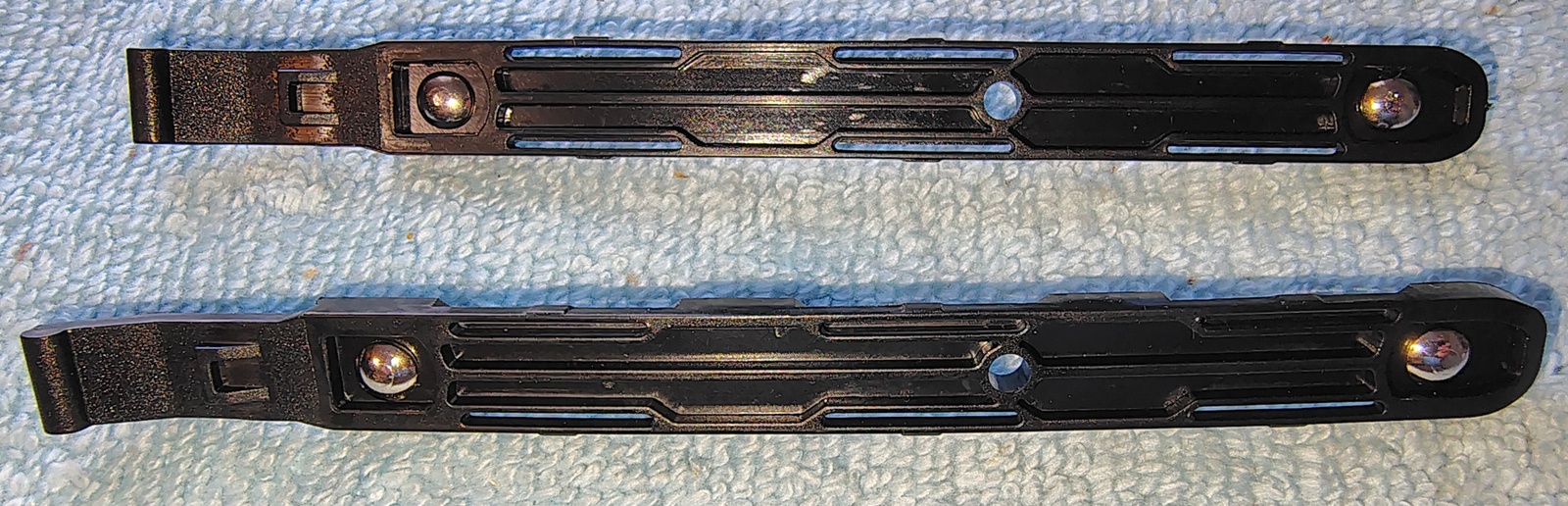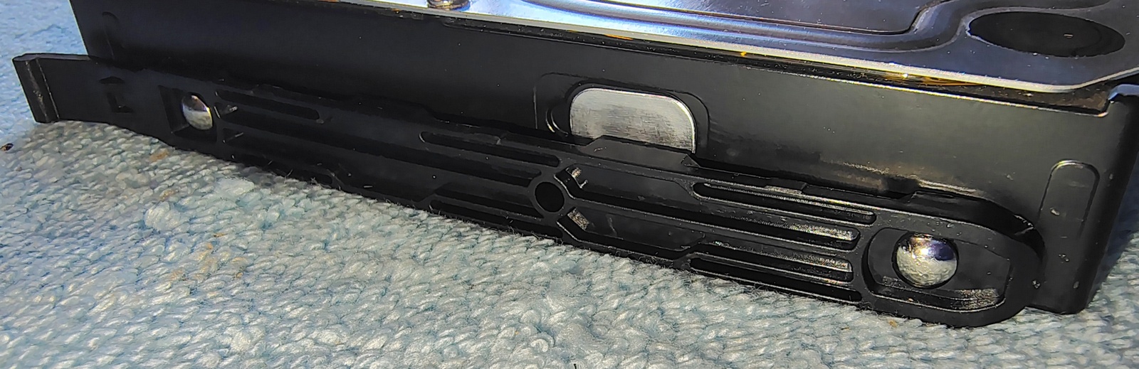 Up for sale is a set of two mounting rails which allows you to mount your hard disk drive (3.5″) inside of a Cooler Master Elite 120 RC-120A-KKN1 case – circa 2014. These come with nubs which fit into the screw holes on the hard drive – this is shown in the last picture. (The hard drive is NOT included) One of the rails is missing the white circular pad – see pictures! The rails measure about 5 3/4 inches long by 1/2 inch tall by 3/16 inch thick.