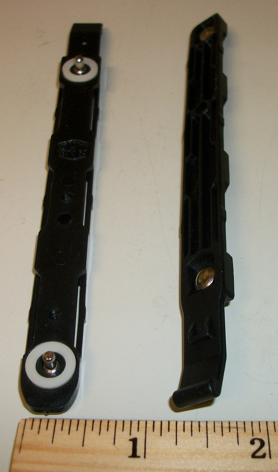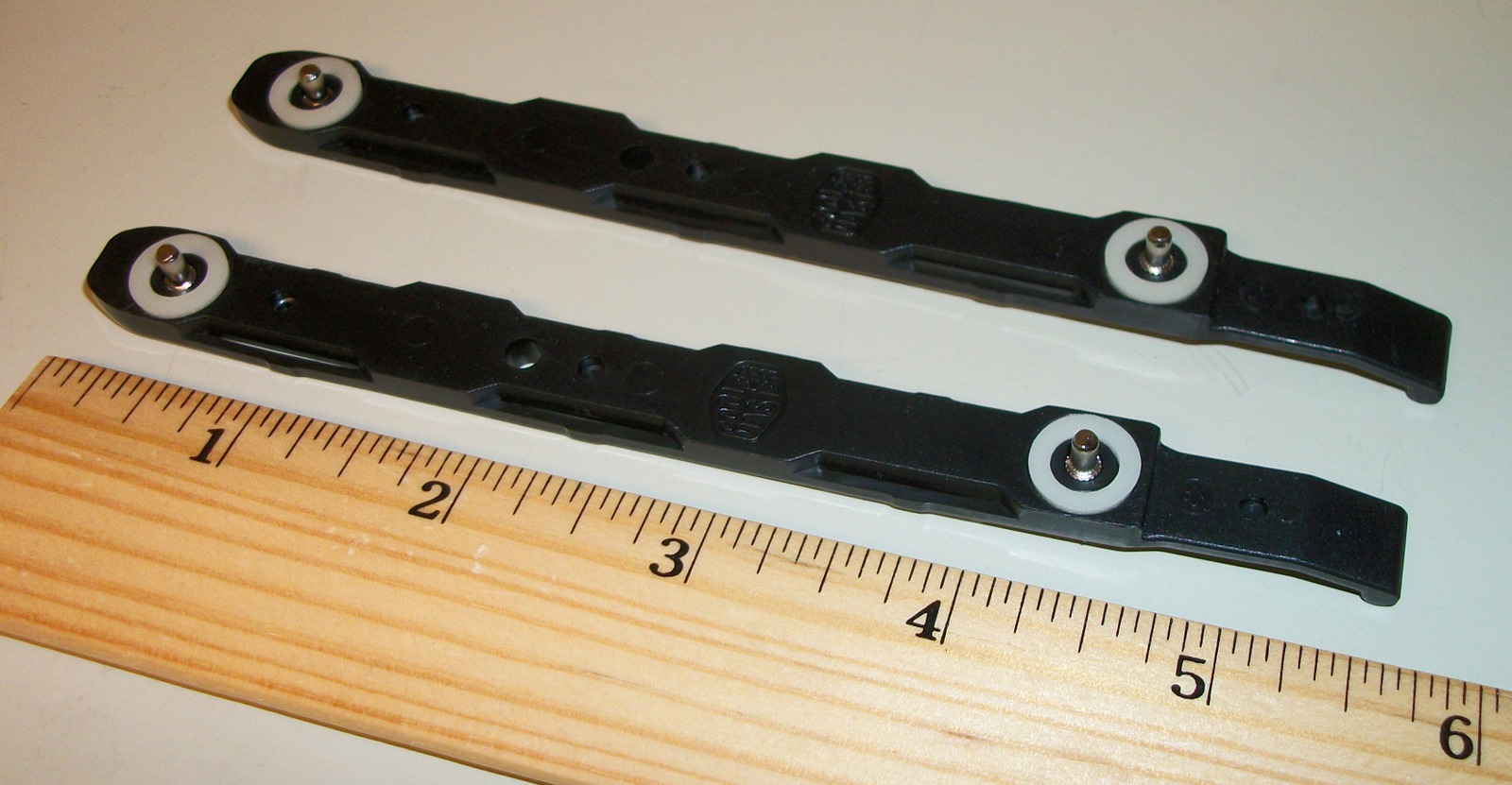 Up for sale is a set of mounting rails which allows you to mount your hard disk drive (3.5″) inside of a Cooler Master Elite 120 RC-120A-KKN1 case – circa 2014. These have metal prongs which insert into the drive screw holes. They measure about 5 3/4 inches long by 1/2 inch tall by 3/16 inch thick.