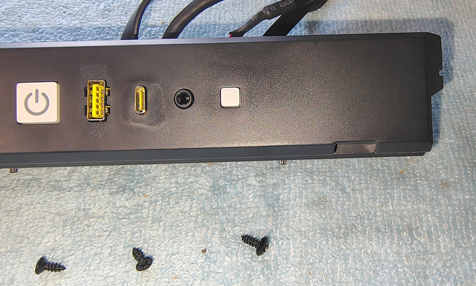For sale is a Corsair 4000D series front I/O panel assembly with white buttons.