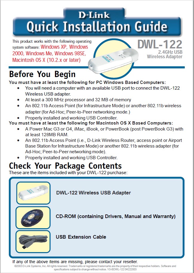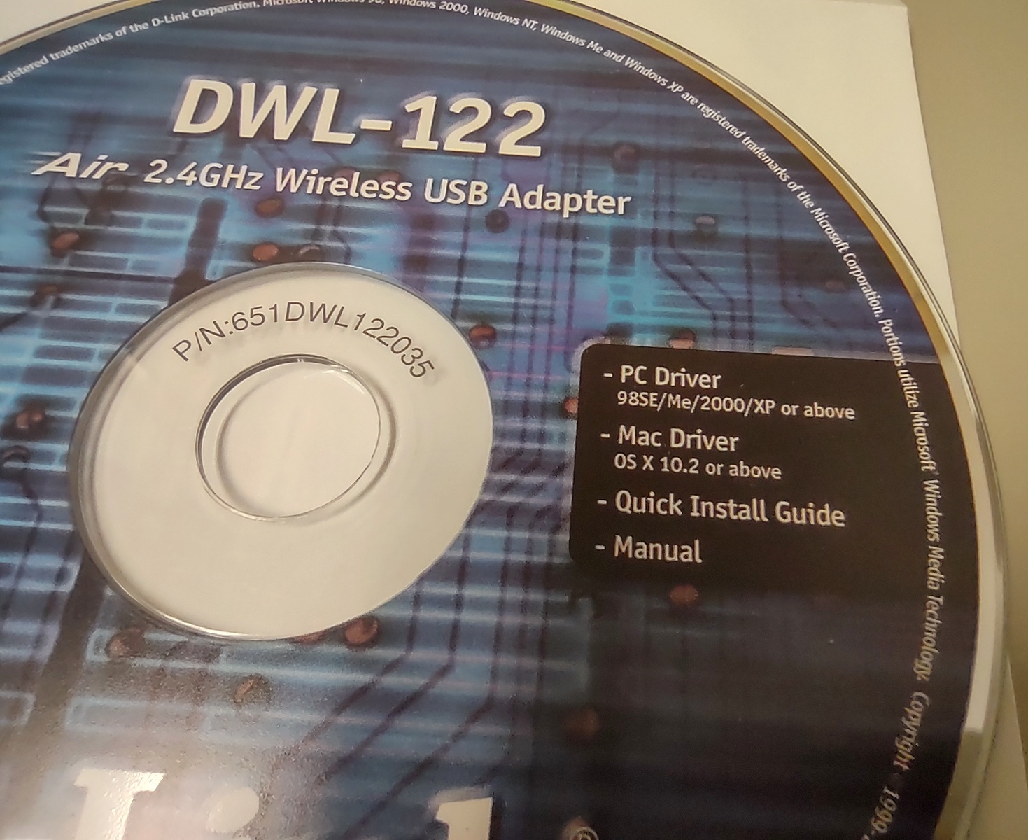 Up for sale is the original driver/install CD which came with a D-Link DWL-122 USB wireless adapter from 2003. You get the CD: Part No. CD-DWL122 Ver. 1.02.