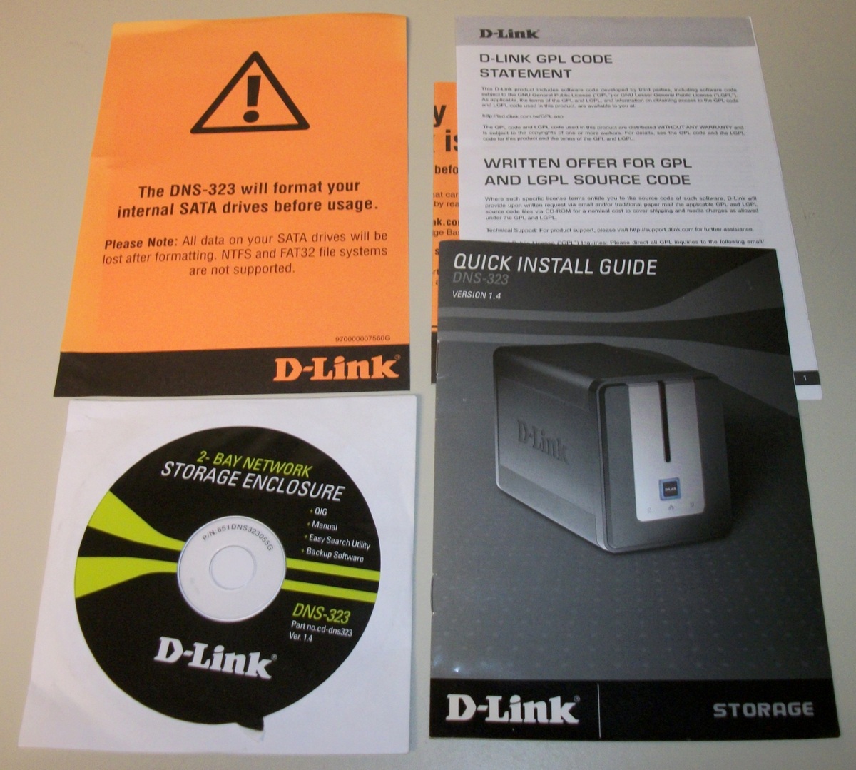 Up for sale is the original CD and quick start guide which came with an D-Link DNS-323 from 2009. Ver. 1.4.