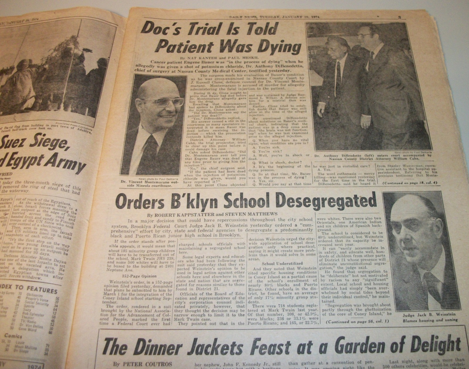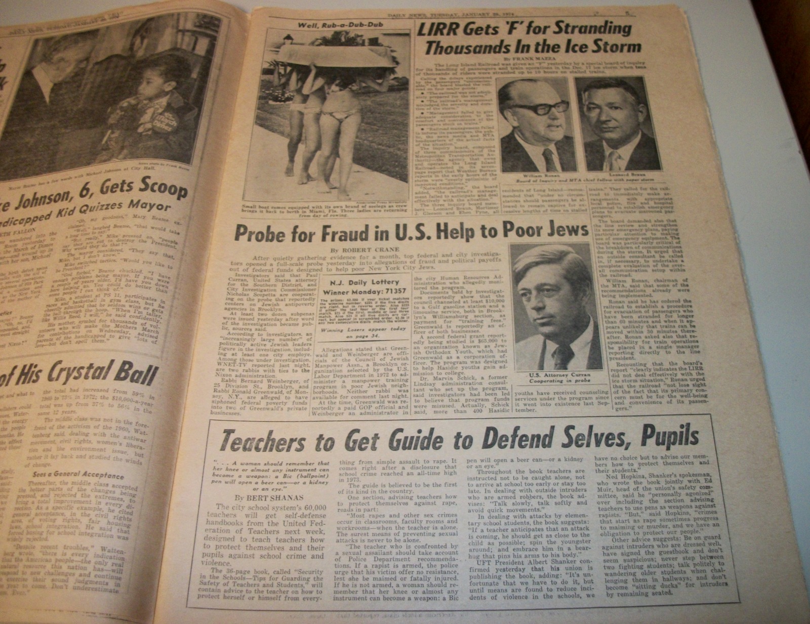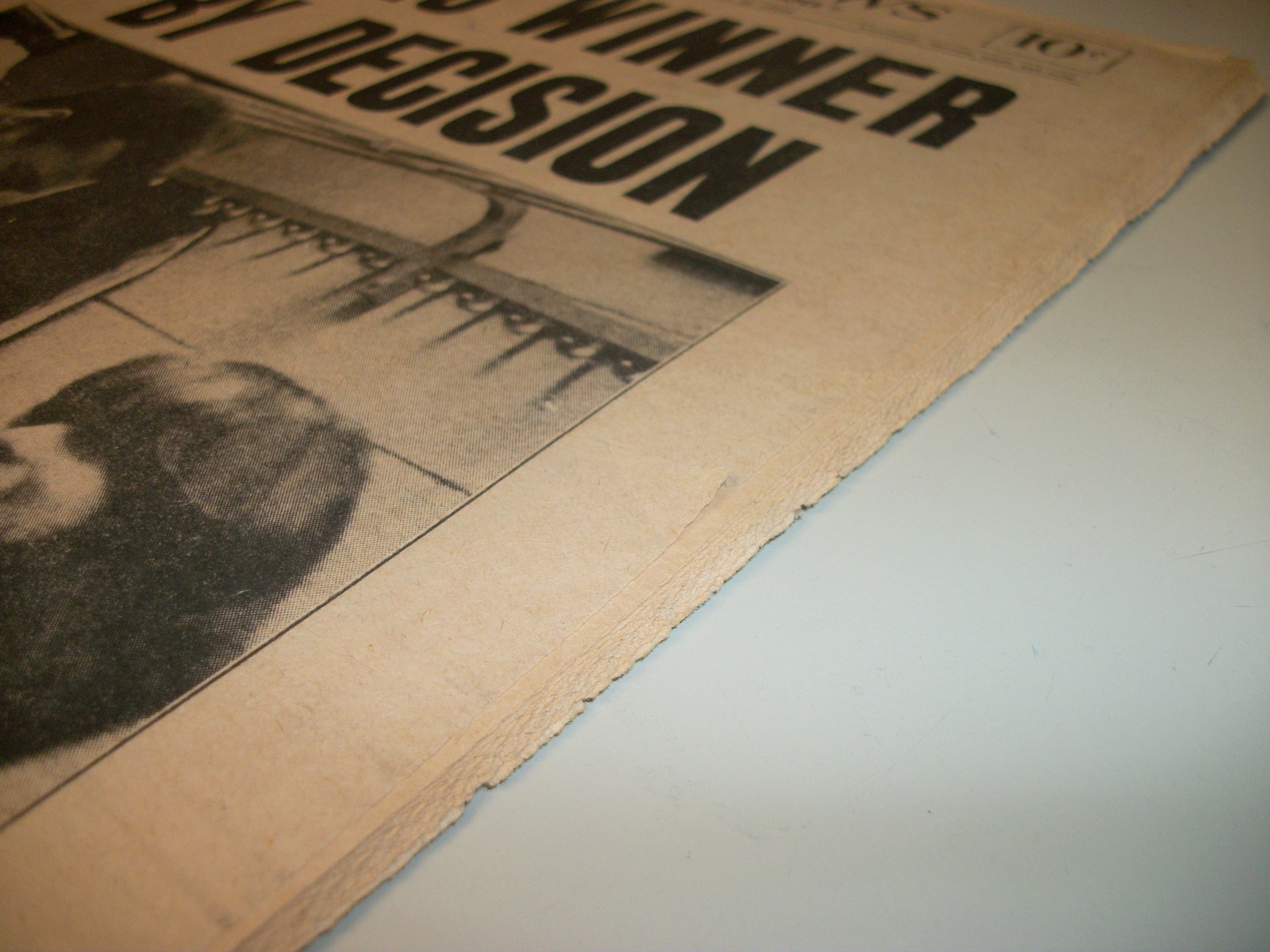 New York Daily News (New Jersey) – Tuesday January 29, 1974. What you see in the pictures is what you get. This is a very interesting old newspaper which features as the front page stories: ALI IS WINNER BY DECISION and has a picture of John F. Kennedy, Jr. (then 12 years old) playfully punching Muhammad Ali. 76 Pages.
