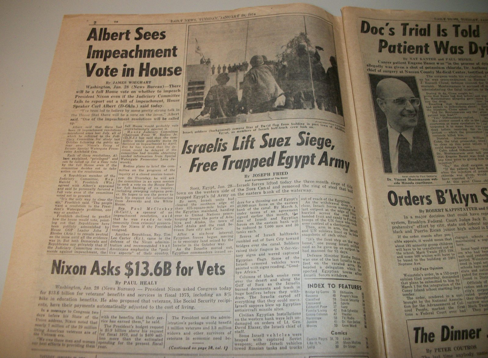 - Speaker of the House, Carl Albert (D – OK) ‘Albert Sees Impeachment Vote in House’
