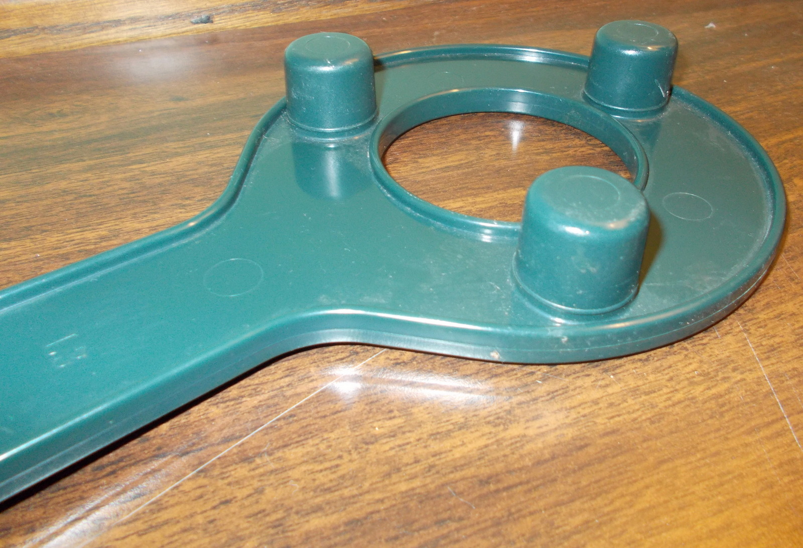 Up for sale is a dark green plastic wrench / opener for an ECOmposter spherical composter. The old ECOmposter has already been disposed of and we found this one when doing some spring cleaning. It was lost pretty early on as we recall struggling opening and closing the composter without it It is in like new condition. The last picture is of an ECOMposter like this is for opening – the three prongs fit into three holes on the top of the composter for screwing and unscrewing the lid. THE ECOMPOSTER IS NOT INCLUDED!! We hope someone out there on the interwebs can use it!