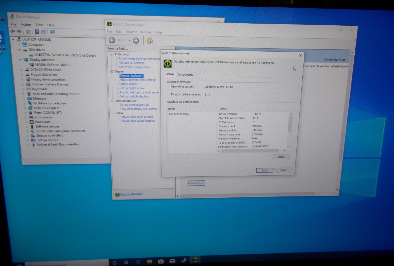 - NVidia GeForce 8400gs discrete graphics card – onboard video is not compatible with Windows 10