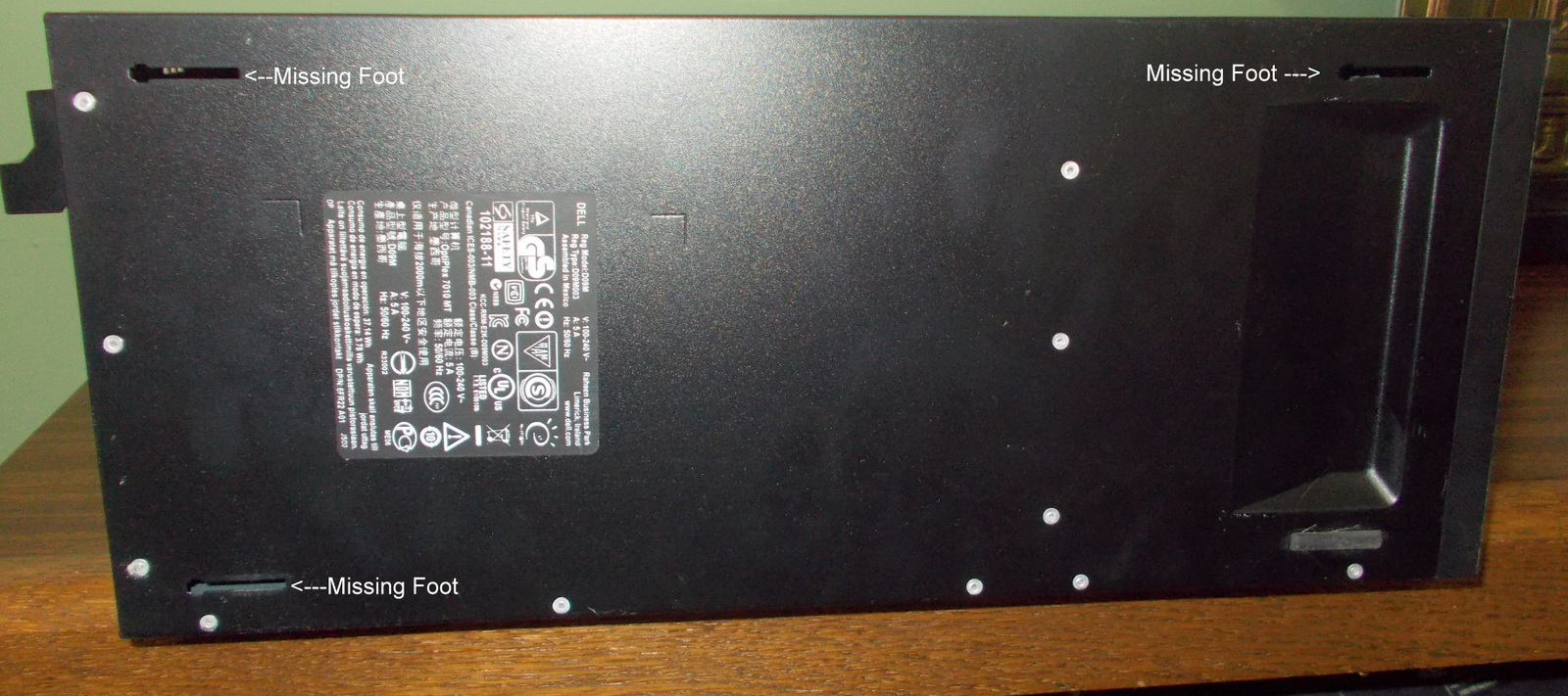 - Missing three of the four feet on the bottom – SEE PICTURE!