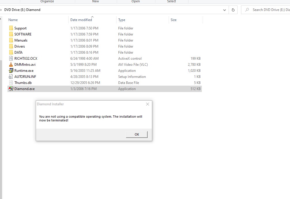 We tried to run the installation on our Windows 10 machine, but the installer reported: “You are not using a compatible operating system. The installation will now be terminated!”