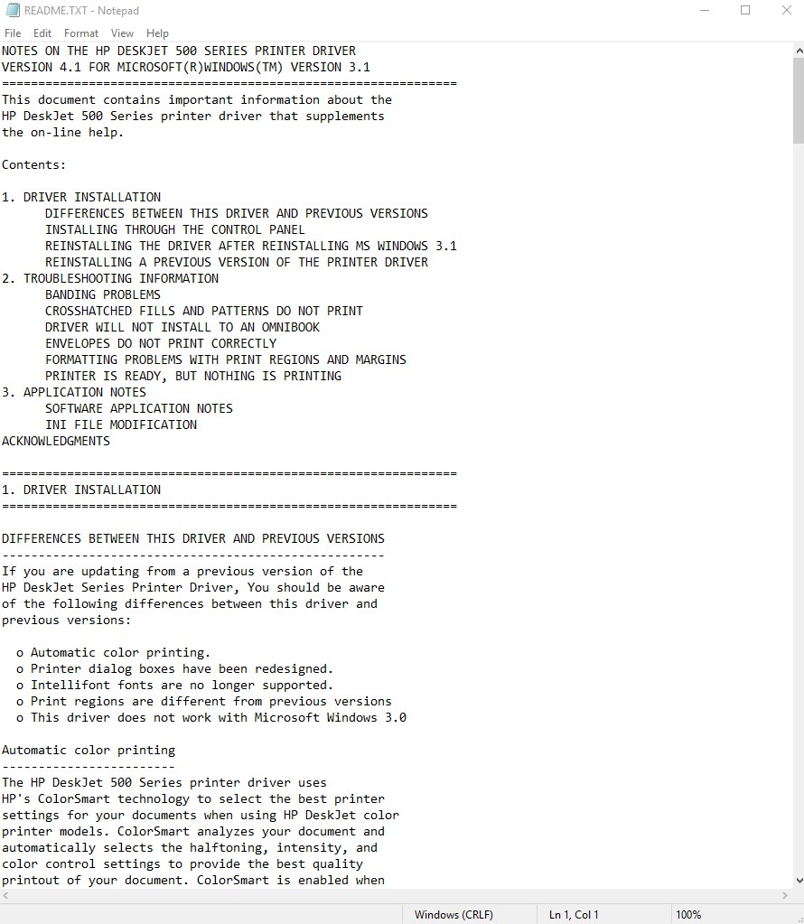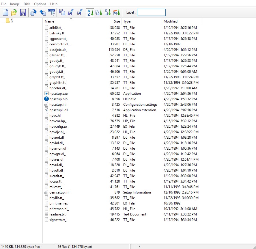 Up for sale is a download of an VFD (Virtual Floppy Disk) image of the original driver CD for HP DeskJet 500 Series Printers from April 1994. You get to download a VFD image of the diskette, Version 4.1 Printer Driver for Windows 3.1. You get a download of an image of the floppy diskette. Just download the .zip file, unzip it and either mount the image or copy it to your blank floppy diskette. We recommend using Winimage for manipulation of floppy image files. The download size of the .zip file is 998 KB (1,022,313 bytes), the uncompressed .vfd file size is: 1.40 MB (1,474,560 bytes) The download link is set to expire after 7 days