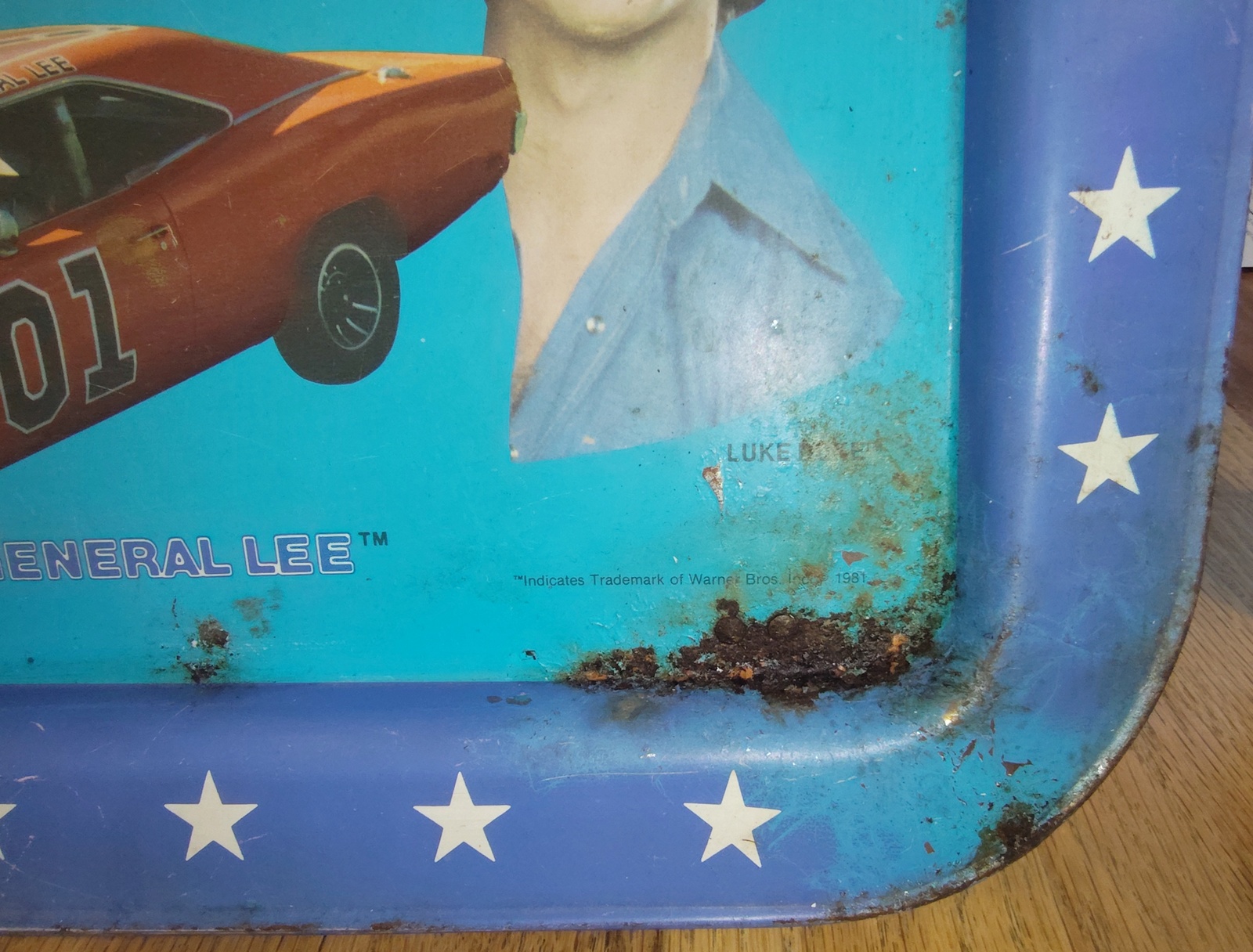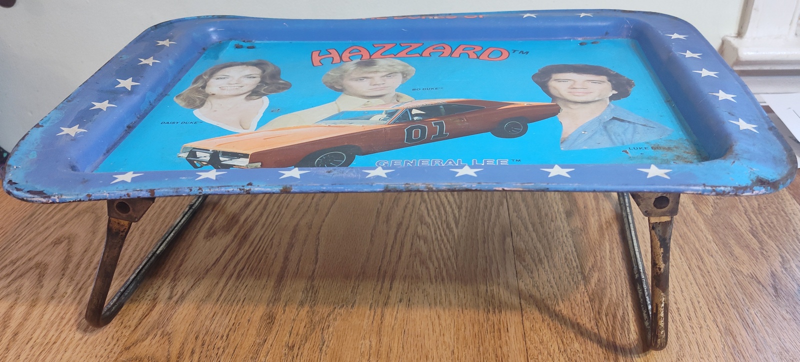 Up for sale is a used Dukes of Hazzard TV tray from 1981 – what you see in the pictures is what you get! This measures about 12 1/2″ wide by about 17 1/2 inches long by about 2″ tall (when folded) or about 6 1/2″ tall (with the legs extended)