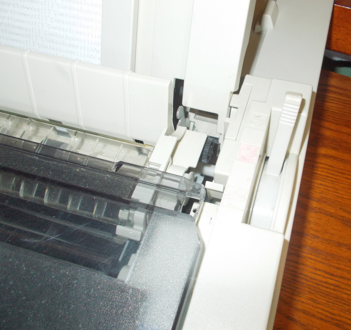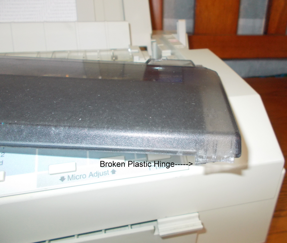 - Broken hinge on plastic cover over the ribbon chamber – see pictures.