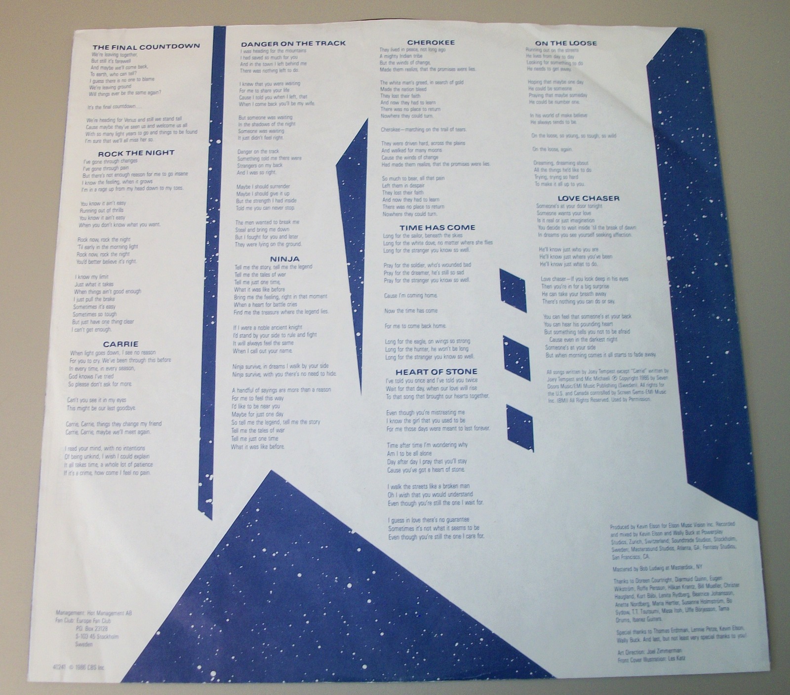 Up for sale is the Europe’s Album: The Final Countdown on vinyl from 1986. LOOK AT THE PICTURES! Used condition, some wear / creasing. The record is breaking through the side of the insert.