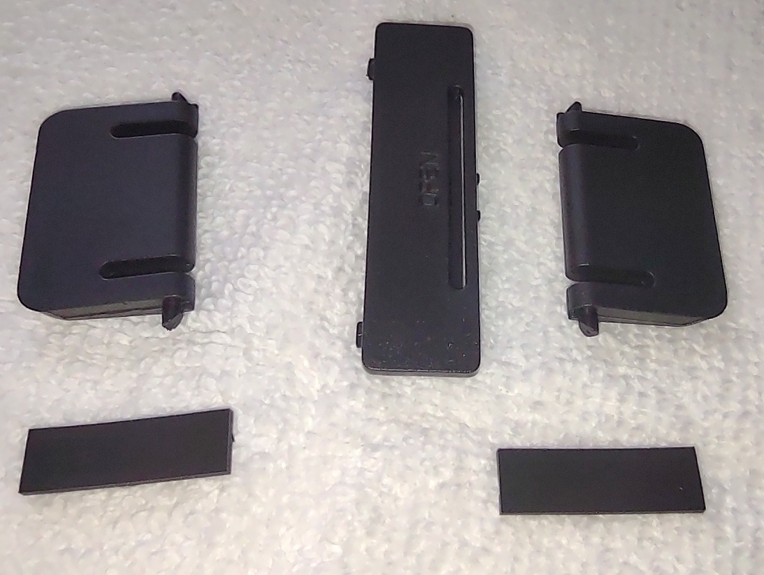 These are from a Staples Ergonomic Wireless Keyboard and are in good used condition – they were pulled from a keyboard that did not survive a coffee spill incident. . . .You will probably need to apply your own adhesive to the rubber pads to stick them to your keyboard.