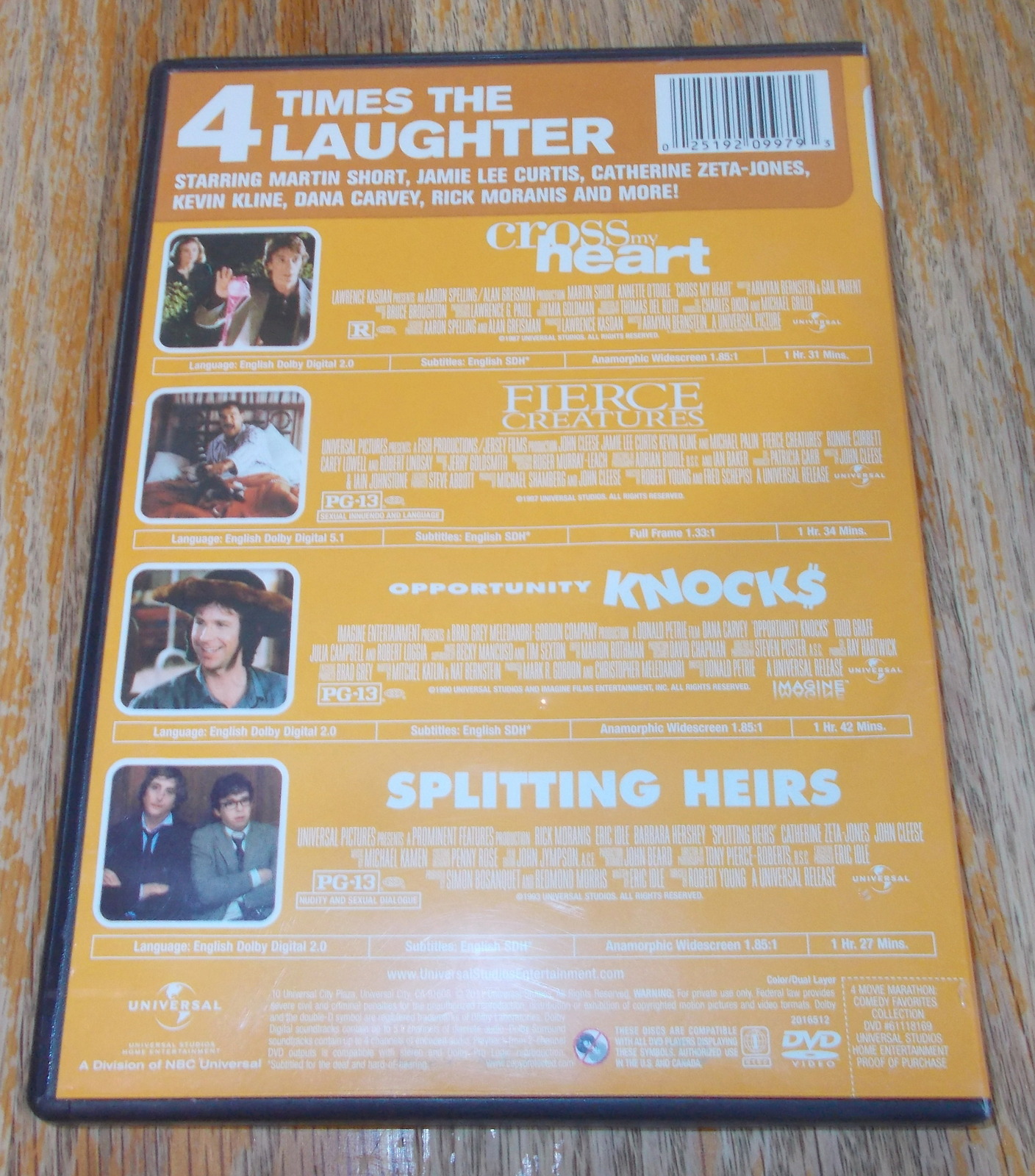 Up for sale is a 4 Comedy Movie Marathon on 2 DVDs. We purchased this just for Fierce Creatures which has the same cast as A Fish Called Wanda and is a very funny movie. If you’re a fan of