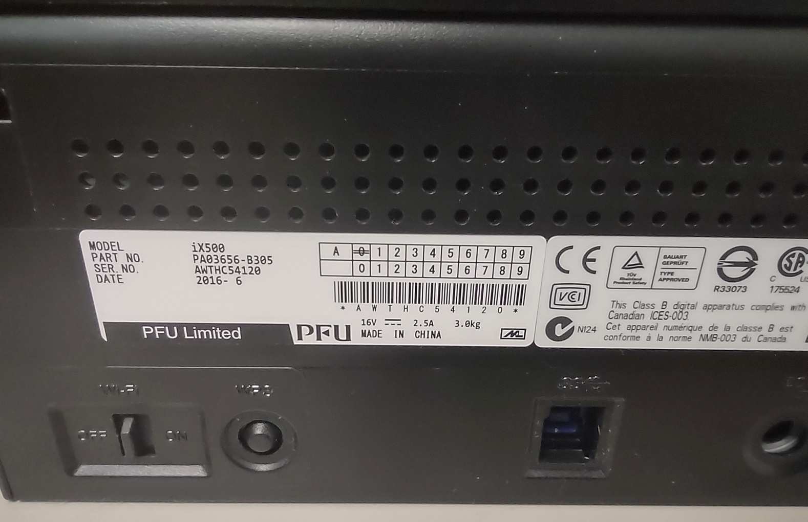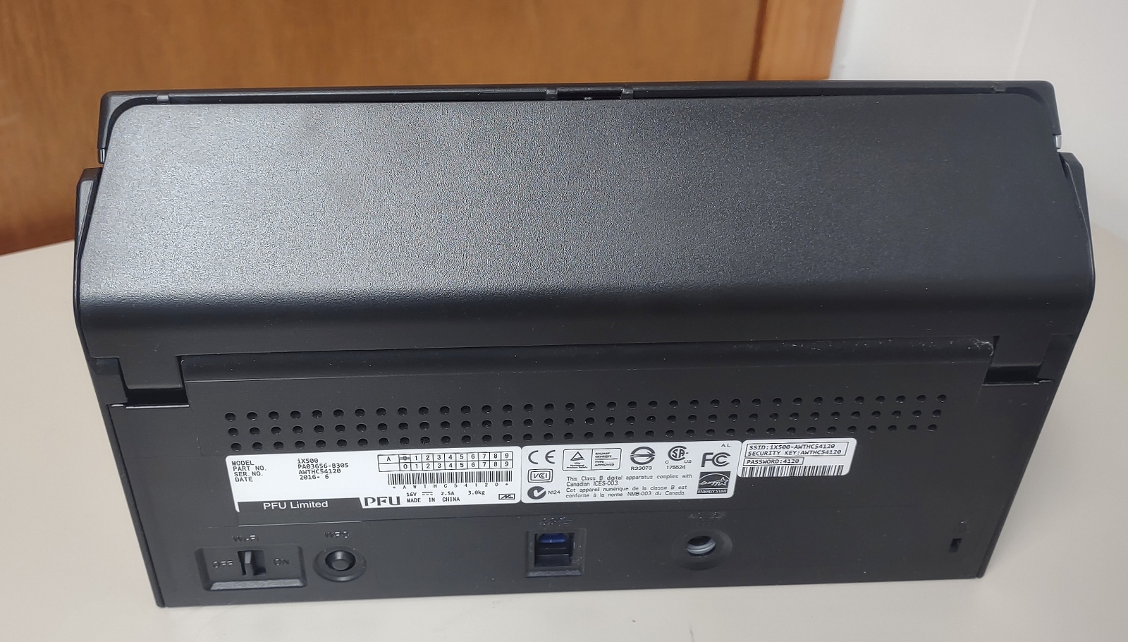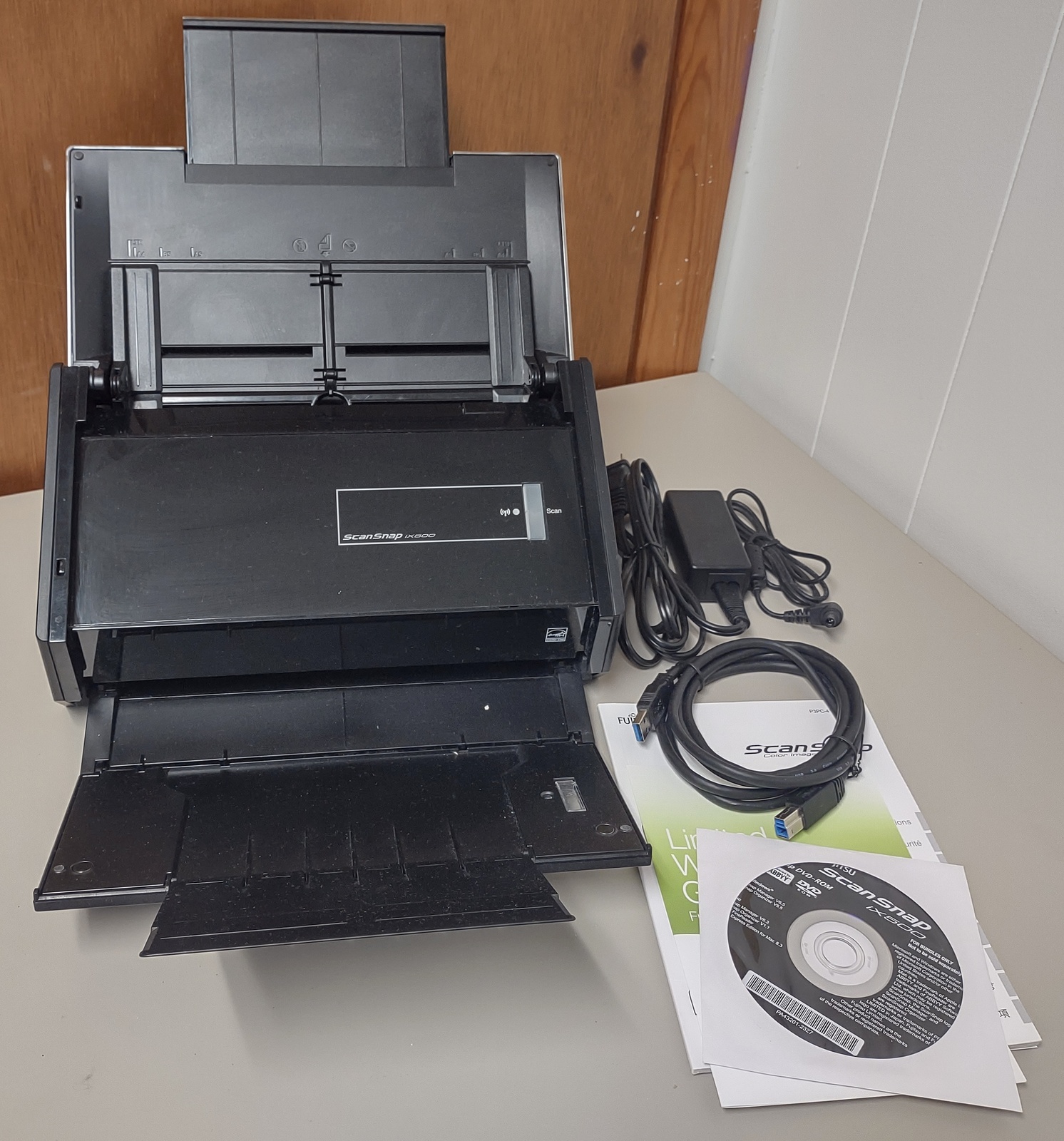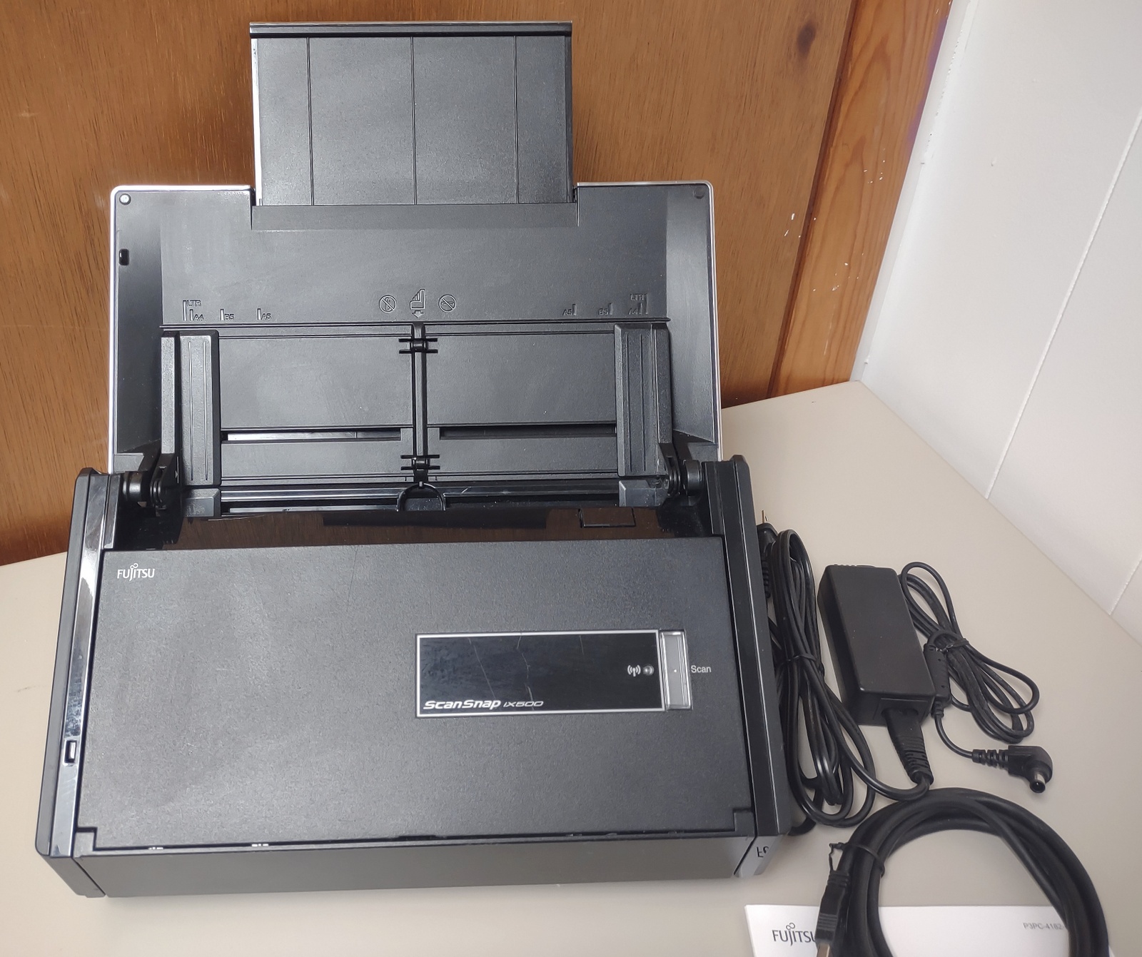 Up for sale is a Fujitsu ScanSnap iX500 USB / Wireless Color Duplex desktop document scanner. We put this one into service in 2016 and it has served well until the past month or so. It started jamming by occasionally pulling one side or the other of a document and twisting the page. We suspect it needs a paper jam kit with new rollers / pads / etc – but we decided to go ahead and purchase a newer, faster ScanSnap and now have this one left over. We exclusively used this connected via USB and never used the wireless capability. Hope someone out there is interested in getting it going again.