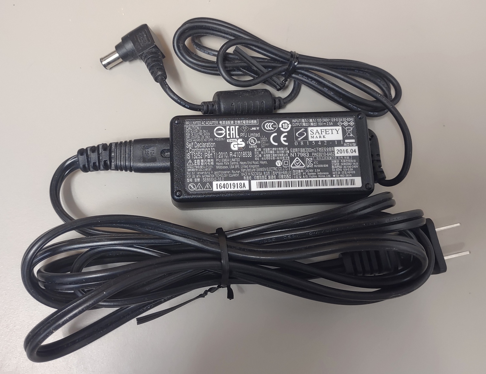 - Original AC adapter – PFU Limited – 16V DC, 2.5A