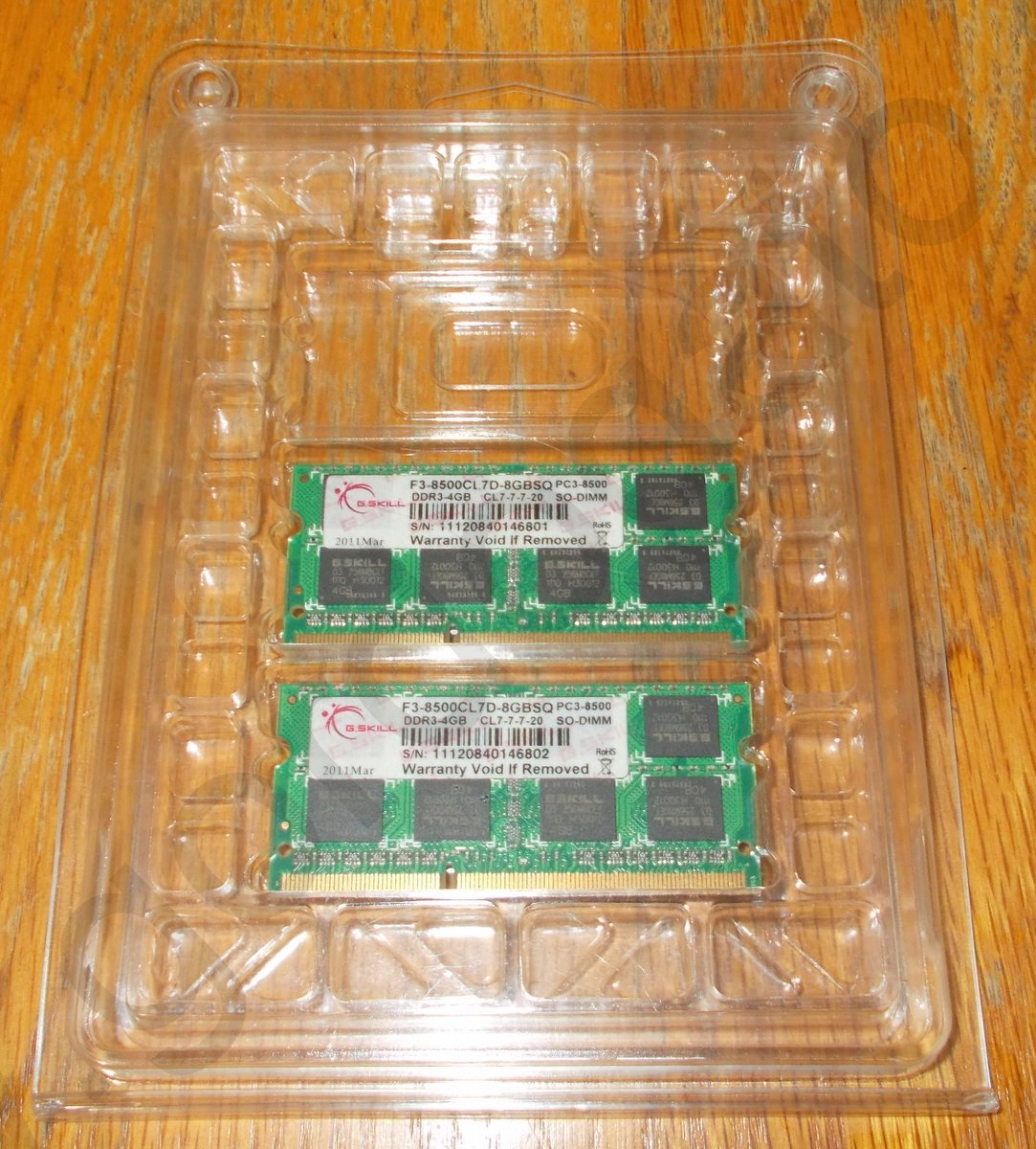 Up for sale is a lot of 2 4GB Memory RAM modules pulled from an laptop PC which was upgraded. We originally purchased these in March of 2011 and installed them in a new laptop (well, new at the time) – we have now upgraded the not so new anymore laptop to 16GB of RAM and have these memory modules left over, hope someone out there on the internet can use ’em. Please check with the manufacturer of your computer for compatibility BEFORE you make your decision to purchase.