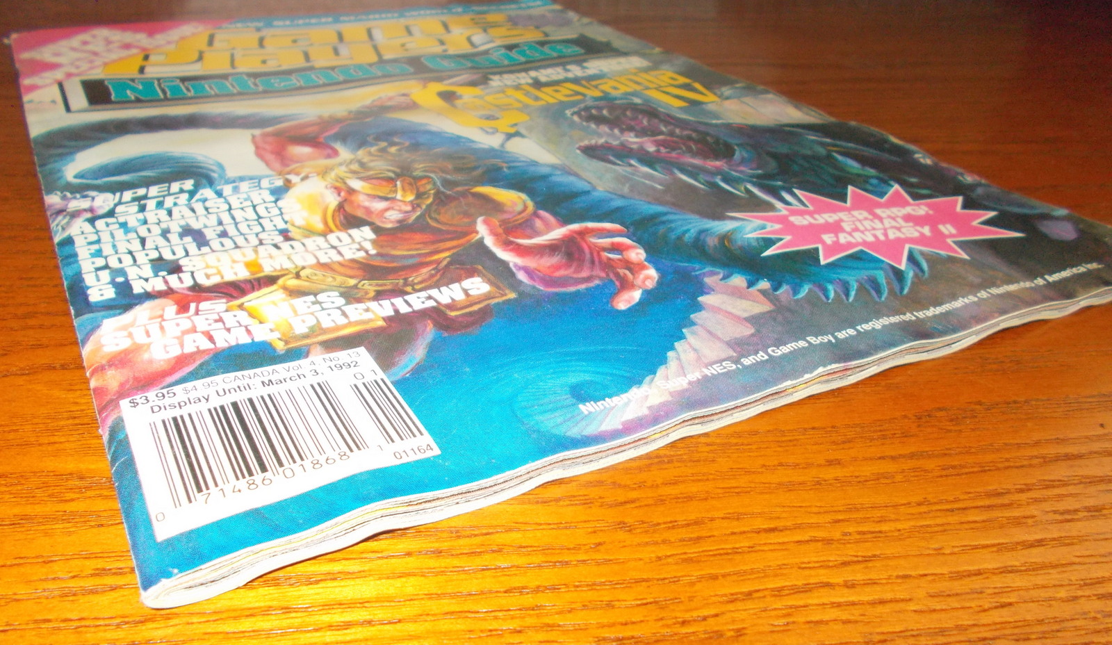 Up for sale is an old video game magazine from 1992: Game Players Strategy Nintendo Guide – Super NES Special Issue, 80 pages. This magazine got wet at some point and there is some staining and some wrinkling of the pages – see pictures! Vol. 4 No. 13 – Display Until: March 3, 1992. This features articles on some of the earliest Super NES games: