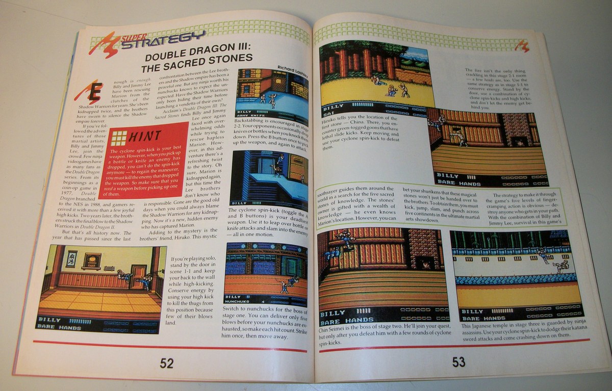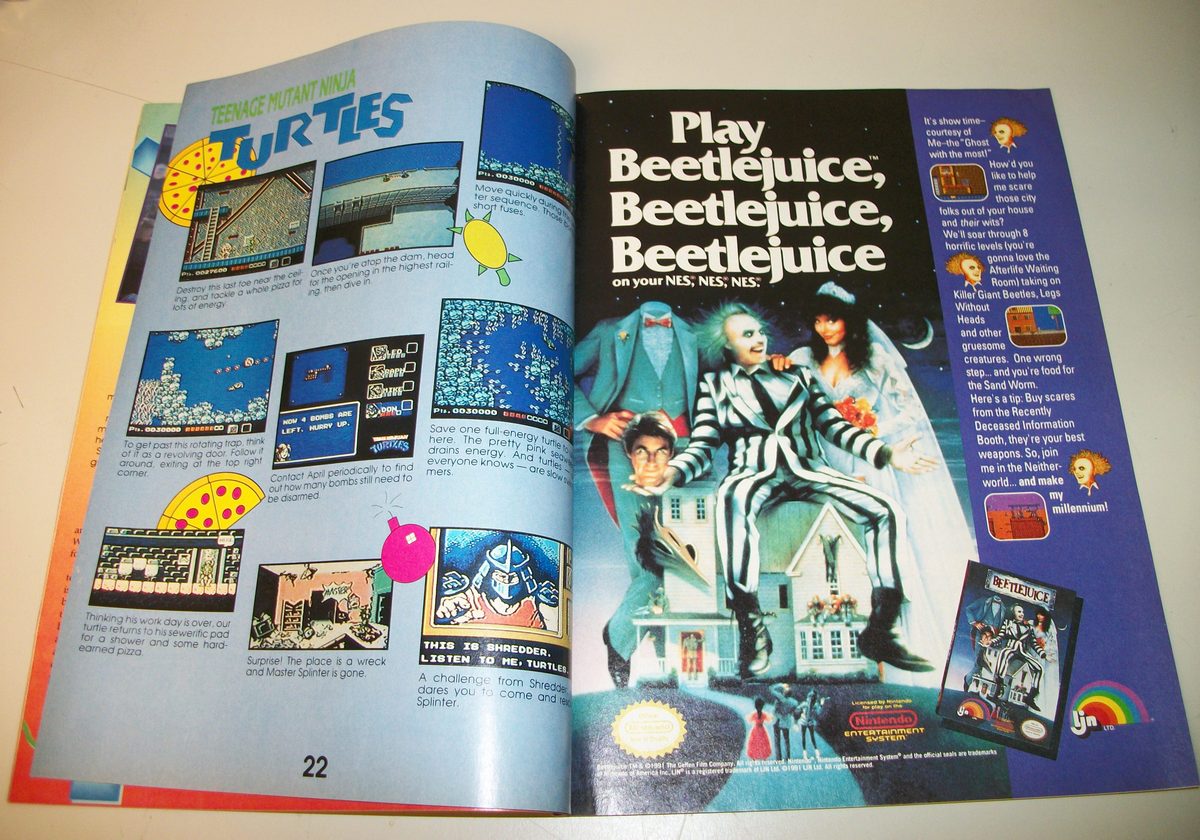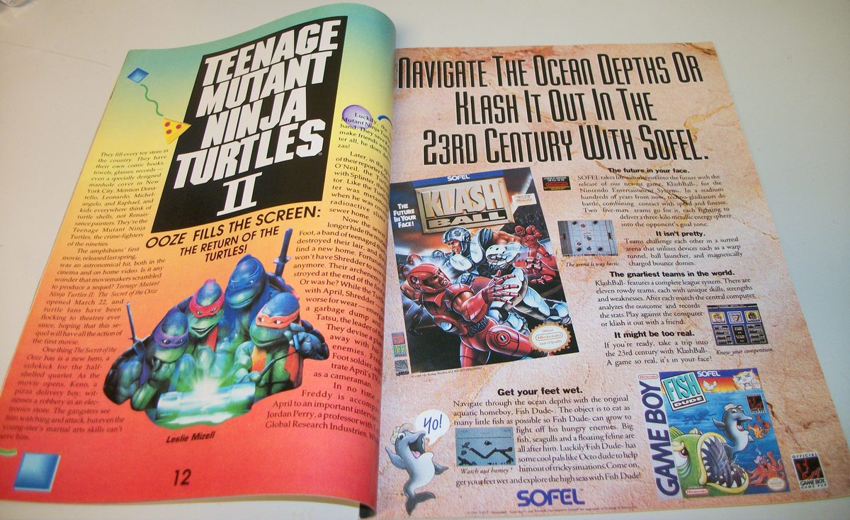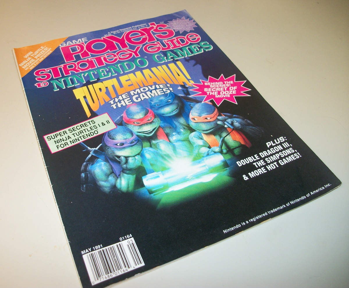 Up for sale is an old video game magazine from May 1991: Game Players Strategy Guide to Nintendo Games, 96 pages. There is some wear and light creases, but otherwise it’s in good used condition – see pictures! It features an extensive strategy guide for Teenage Mutant Ninja Turtles games for NES.