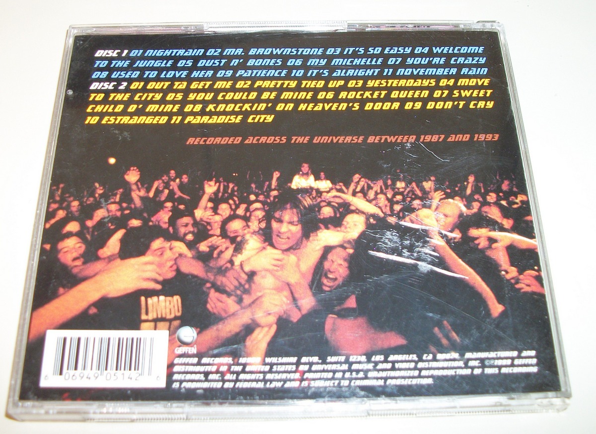 Up for sale is Guns n’ Roses’ Live Album: Live Era ’87-’93 on 2 CDs from 1999, UPC: 606949051426. The CDs and artwork are in good shape, but the case has some scratches / scuffs on it – please examine the pictures BEFORE you make your decision to purchase this item.