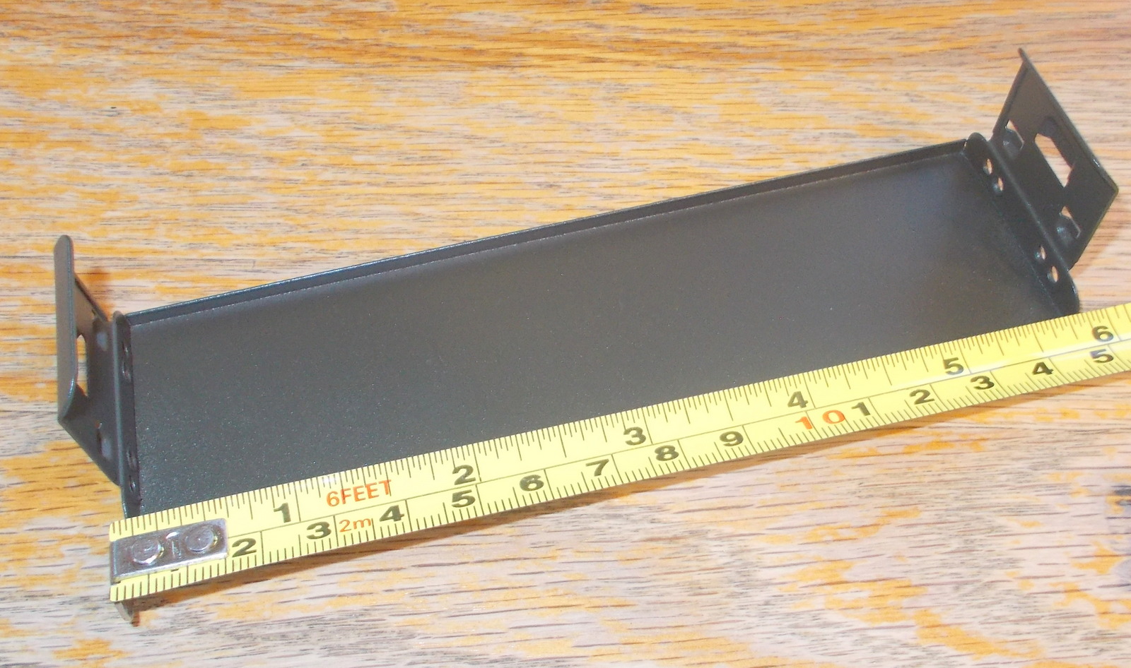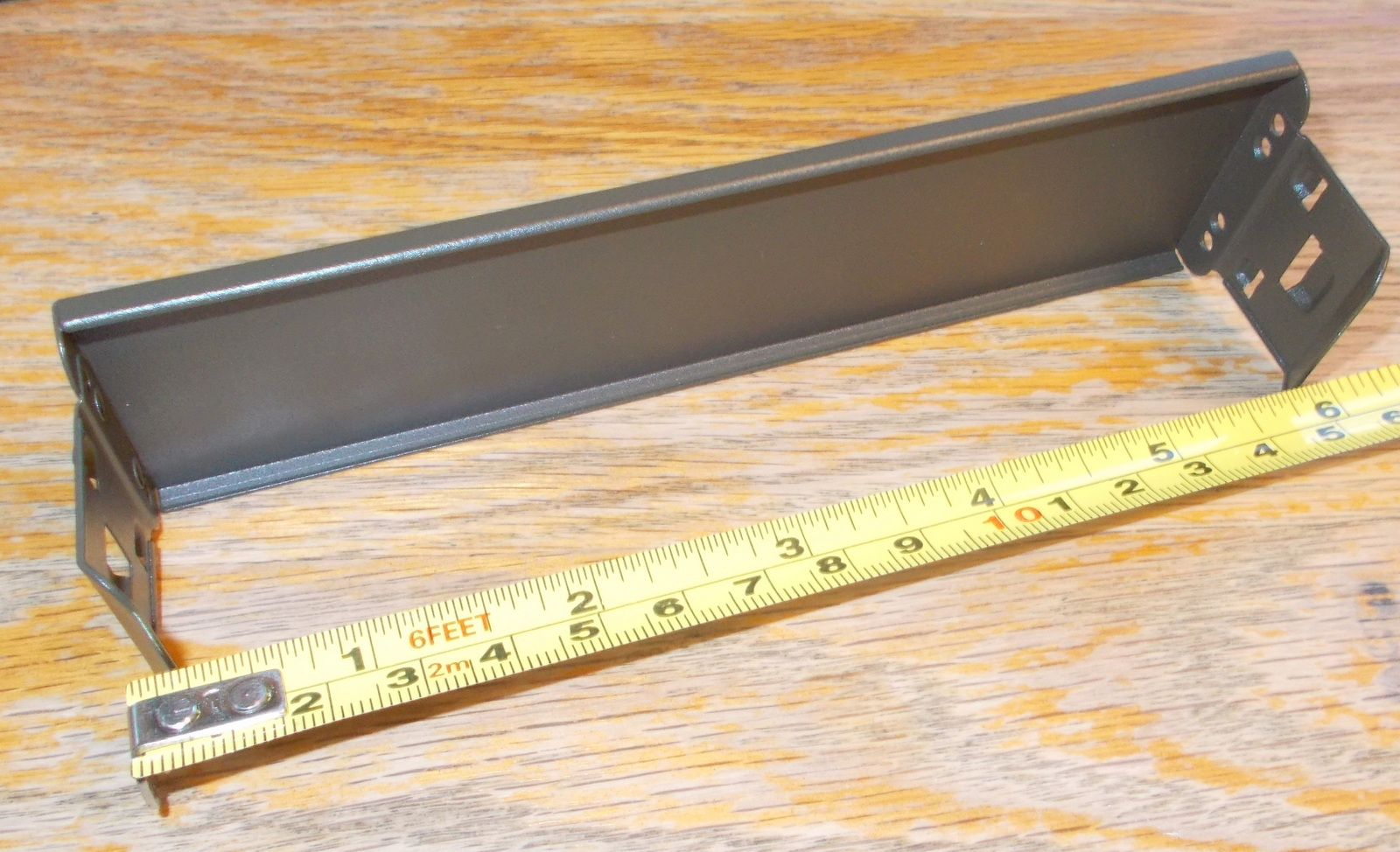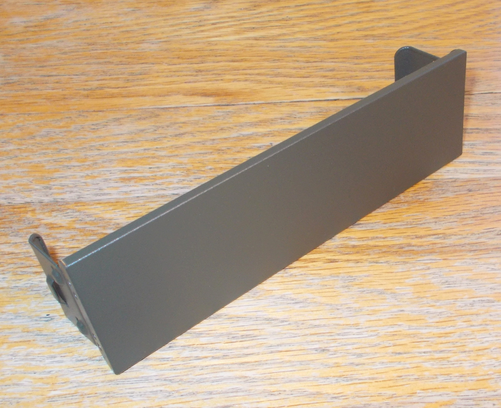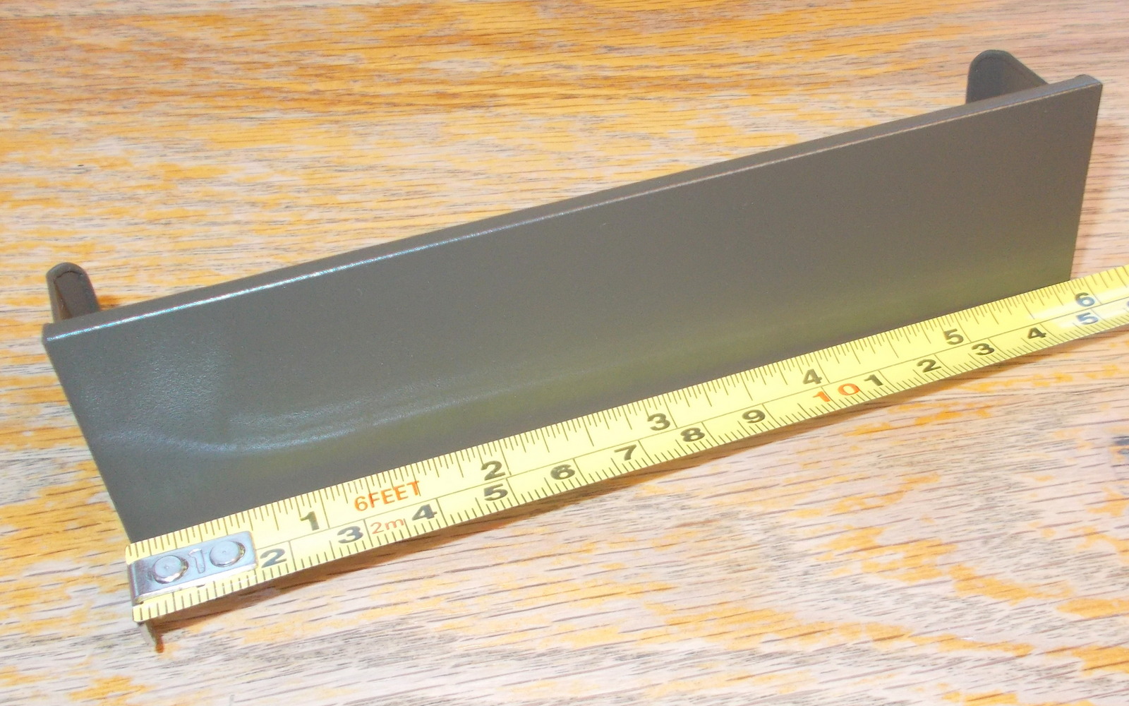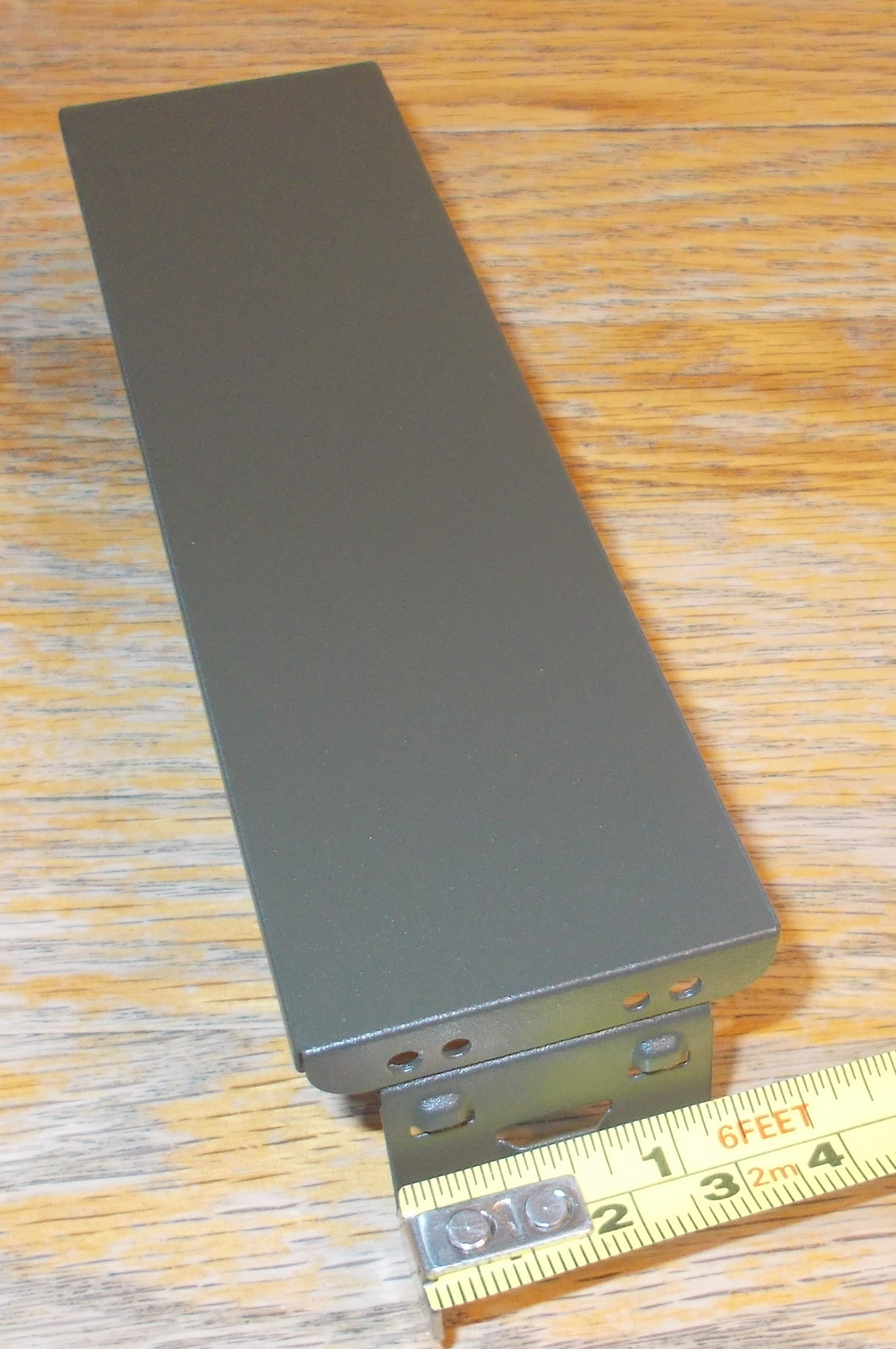 Up for sale is a green steel faceplate for use with Corsair Vengeance C70 cases. It is for a 5.25″ external bay. This may fit other cases, but we’re not for certain – you should check with Corsair for compatibility with your case BEFORE you purchase this one. It measures about 5 7/8 inches wide by about 1 11/16 inches tall – the tabs extend back about 1 1/4 inches. It is a very dark green color – almost black, but not quite – hard to see in the pictures.