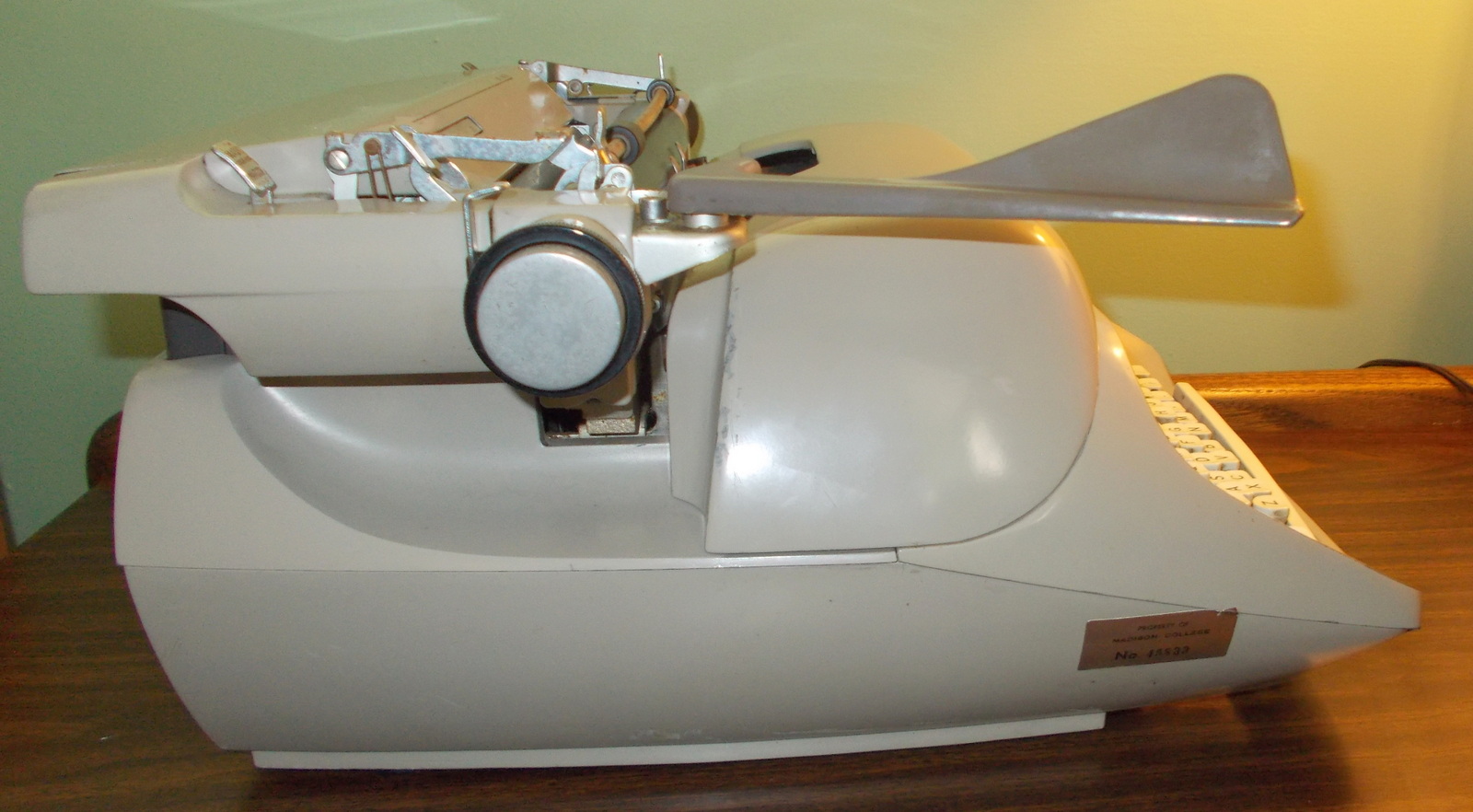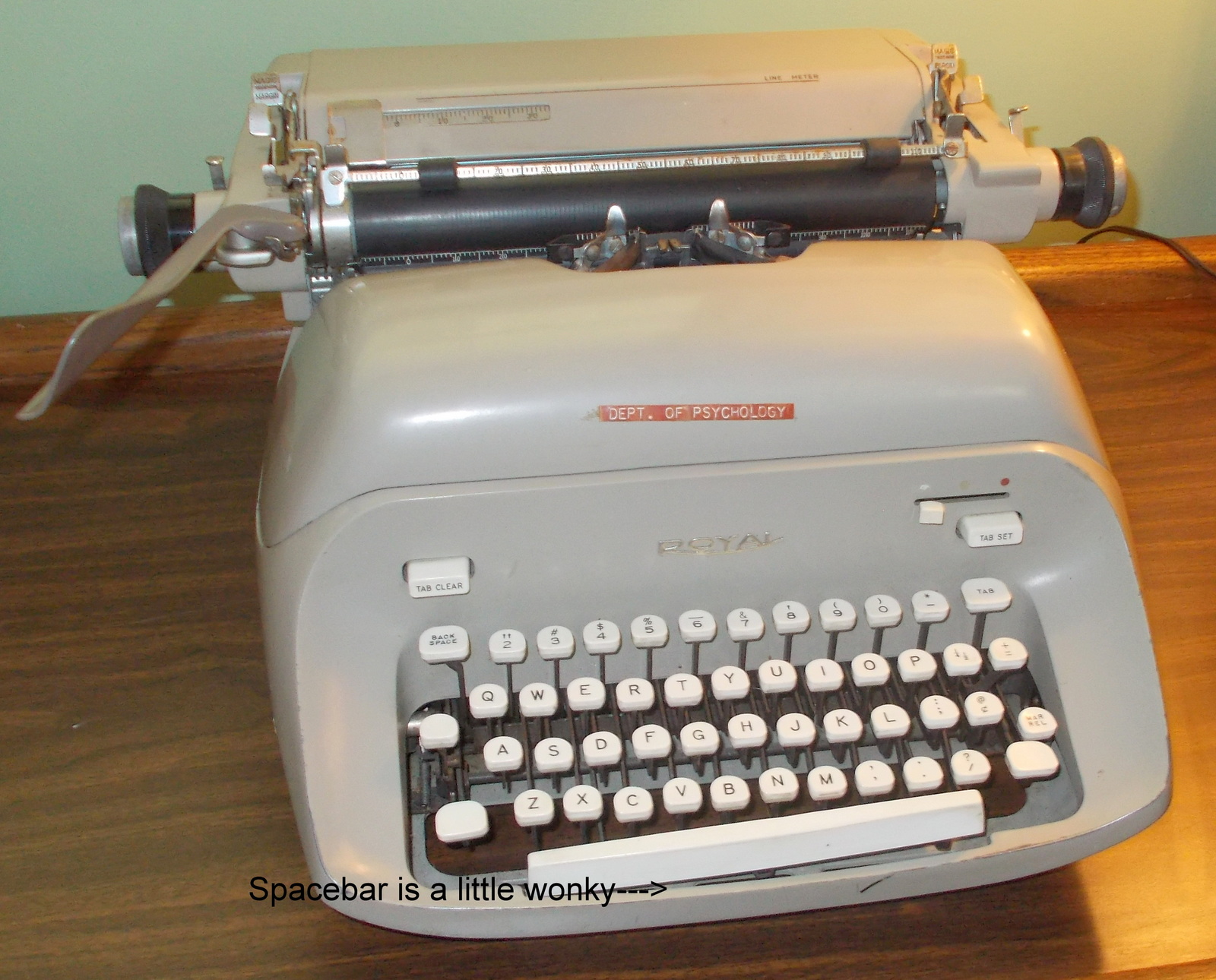Up for sale is a used Royal Empress Typewriter. This was purchased as surplus property from James Madison University in Harrisonburg, VA in the late 1990’s and was stored in an old van for 15+ years. It still has the ‘Property of Madison College’ sticker on the side as JMU was known back in the 1960’s and it also has one of those old label maker labels on the front for ‘Dept of Psychology’. It is a bit dirty and the keys do not return when depressed – so it likely needs at the very least some lubrication – most likely a professional repair job. The space bar is also a little bit wonky – SEE PICTURES! Please keep these things in mind when making your decision. This old typewriter is heavy (around 40# plus when properly packed), so if you would like to save on the shipping, local pickup at no charge is available. We make regular trips to Manassas, VA and Williamsburg, VA, so if you’re in the northern Virginia area or Tidewater region, we can bring this heavy item along for you to pick up to save on the shipping.