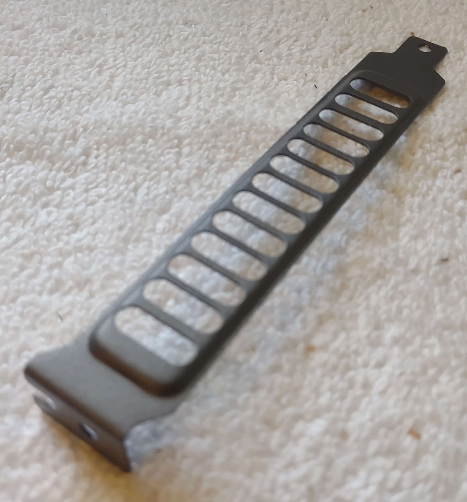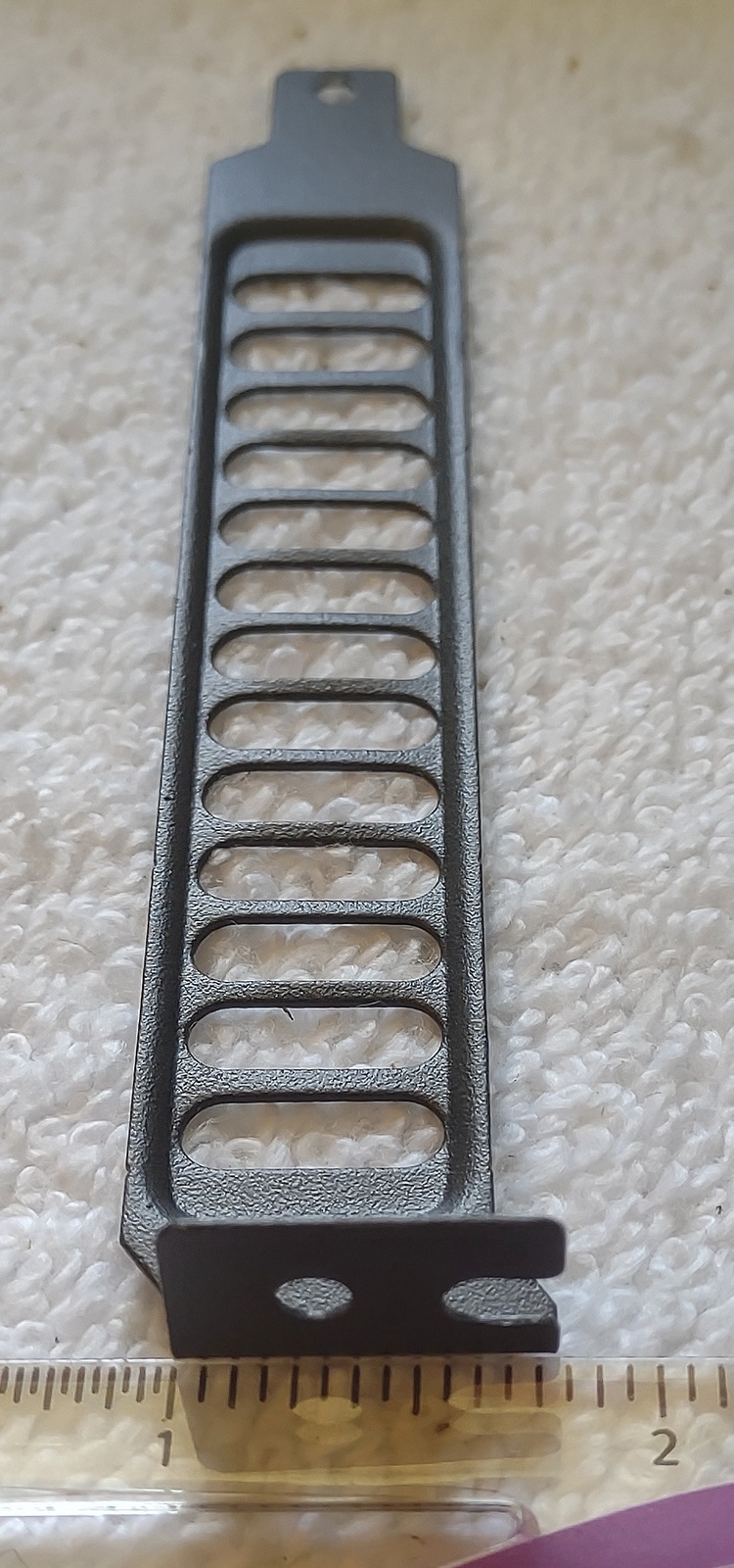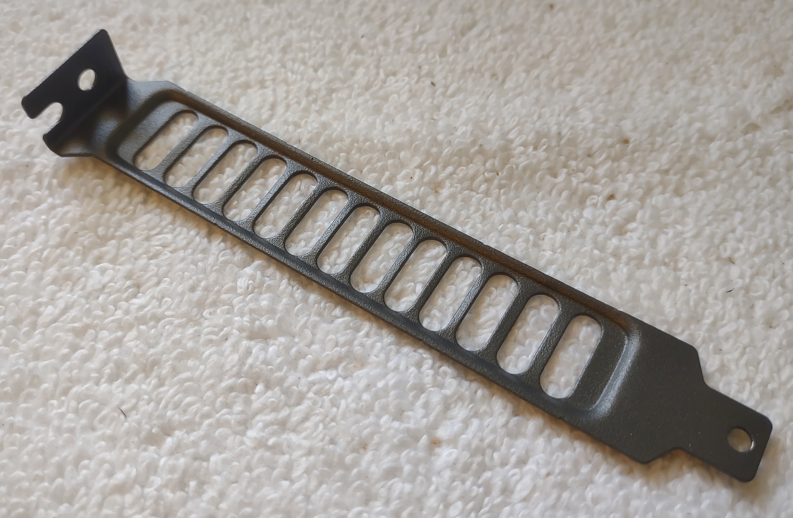 Up for sale is a grey / gray PCIe slot cover bracket for Fractal Design North PC computer cases. This is in unused condition and may be compatible with others since PCIe slot covers are pretty standard. Please check with Fractal Design for compatibility with your case BEFORE you purchase this item. If you’re looking for one to match what you’ve got with a Fractal Design North case, then this might be it! Hope someone out there on the interwebs can put it to use!