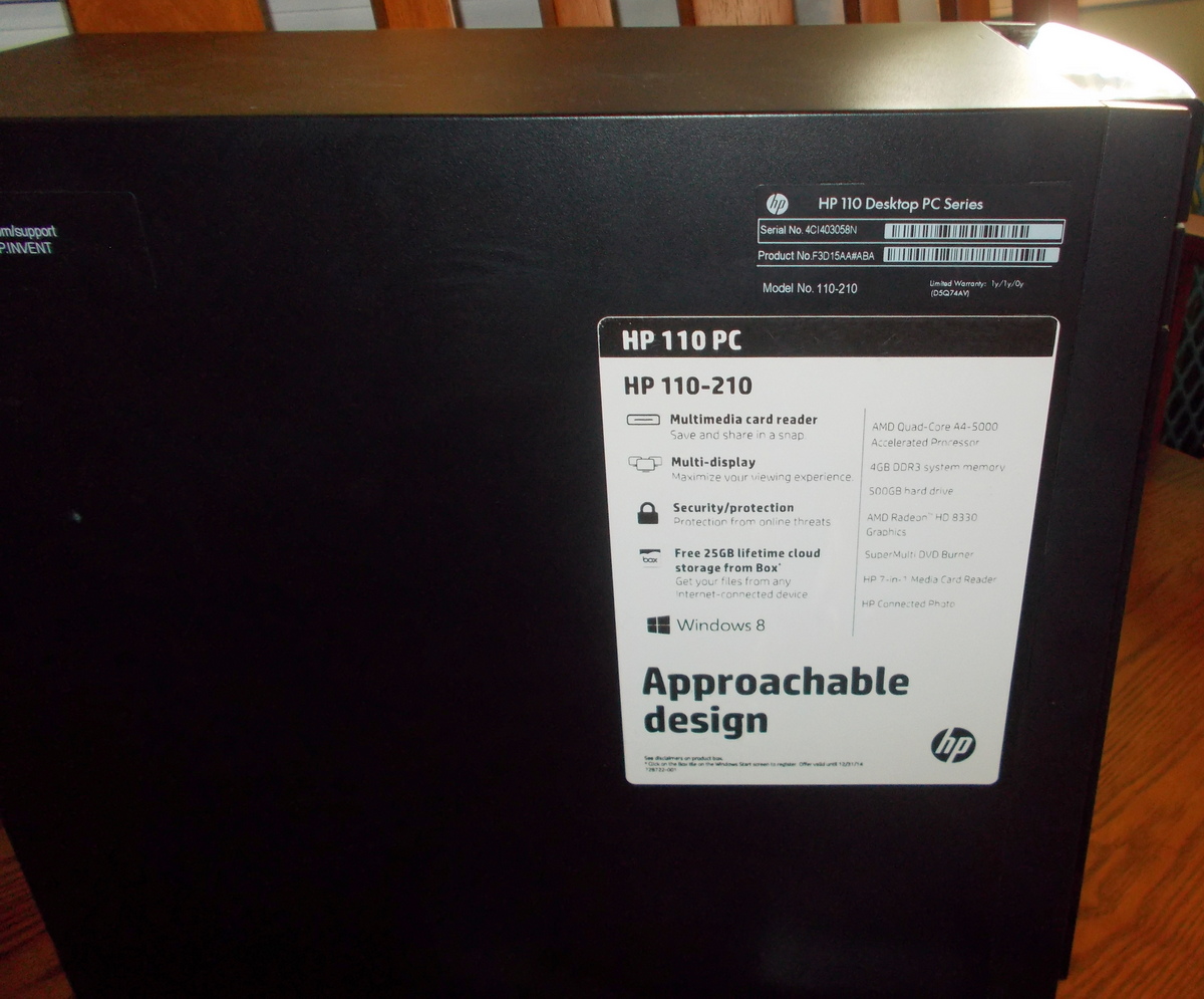 Up for sale is a used HP 110-210 Mini Tower Desktop PC in good used condition. The HDD has been wiped and a there is a clean install of Windows 10 Home x64 version 1809 on it – this originally came with Windows 8 on it, but there is NO PRODUCT KEY included. There is no password for Windows – we recommend you change this. The case is in good shape with minor scratches/scrapes. Please keep these things in mind when considering your purchase. If you would like to save on the shipping cost, you’re welcome to schedule an appointment and stop by to pick it up.
