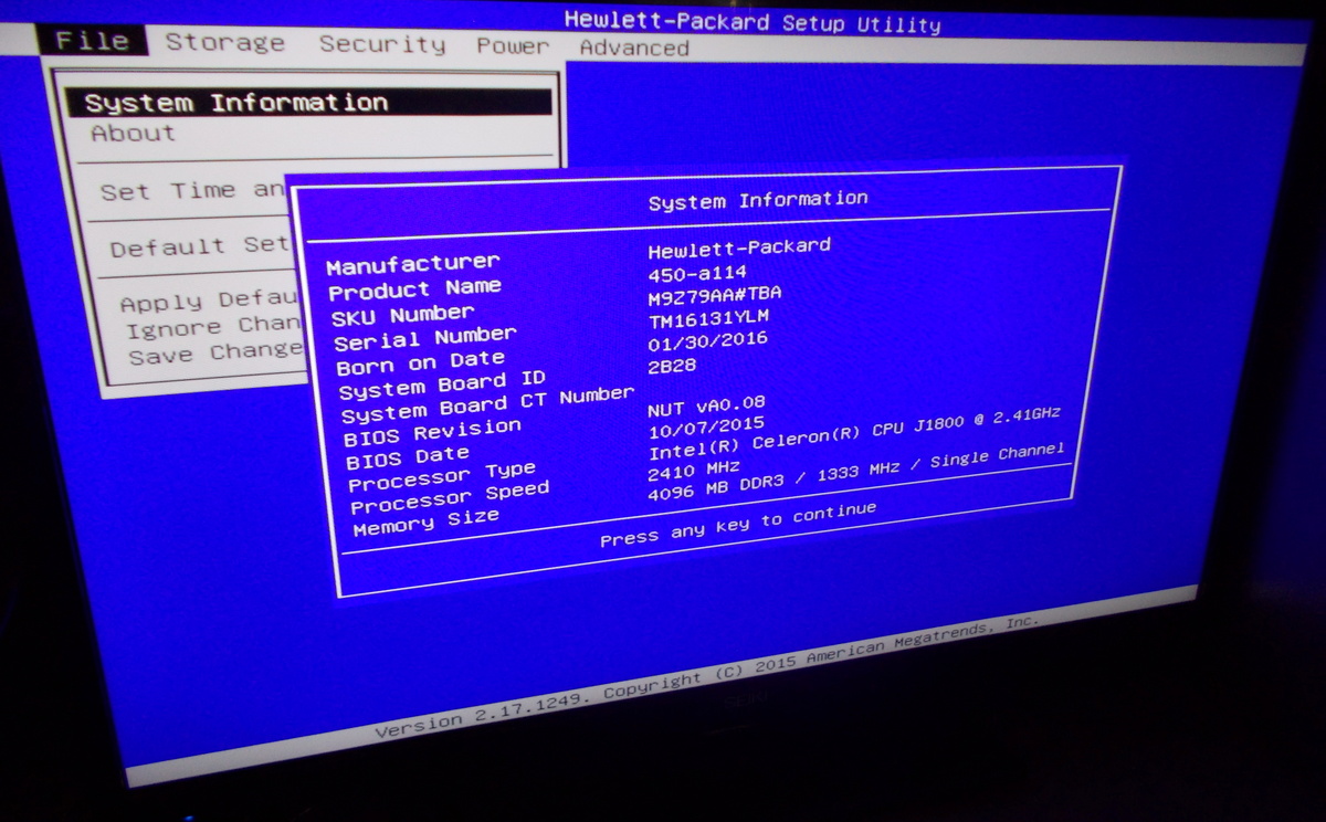 - Intel Celeron J1800 CPU @ 2.41 GHz