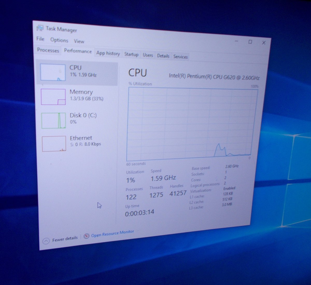 - Intel Pentium G620 CPU @ 2.6 GHz
